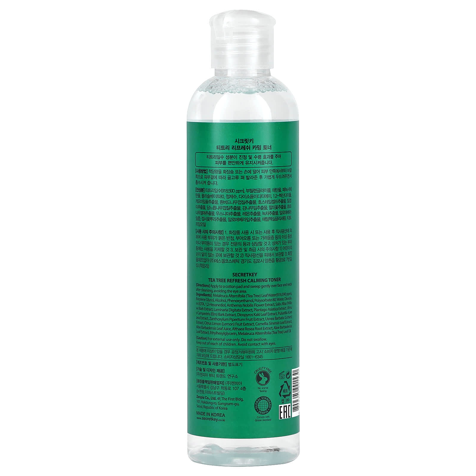 Вода из листьев чайного дерева (Melaleuca alternifolia) (918 590 част./млн), бутиленгликоль, спирт, феноксиэтанол, полисорбат 80, вода, двудомная ЭДТК, 1,2-гександиол, экстракт цветков ромашки (Anthemis nobilis), экстракт коры ивы (Salix alba), экстракт ламинарии пальчаторассеченной (Laminaria digitata), экстракт подорожника азиатского (Plantago asiatica), экстракт коры вяза (Ulmus campestris), экстракт листьев хурмы восточной (Diospyros kaki), экстракт прострела корейского (Pulsatilla koreana), экстракт зантоксилума перечного (Zanthoxylum piperitum), экстракт уснеи бородатой (Usnea barbata), экстракт плодов лимона (Citrus limon), экстракт листьев зеленого чая (Camellia sinensis), сок листьев алоэ вера (Aloe barbadensis), экстракт корня штокрозы розовой (Althaea rosea), экстракт листьев алоэ вера (Aloe barbadensis), этилгексилглицерин, масло из листьев чайного дерева (Melaleuca alternifolia).