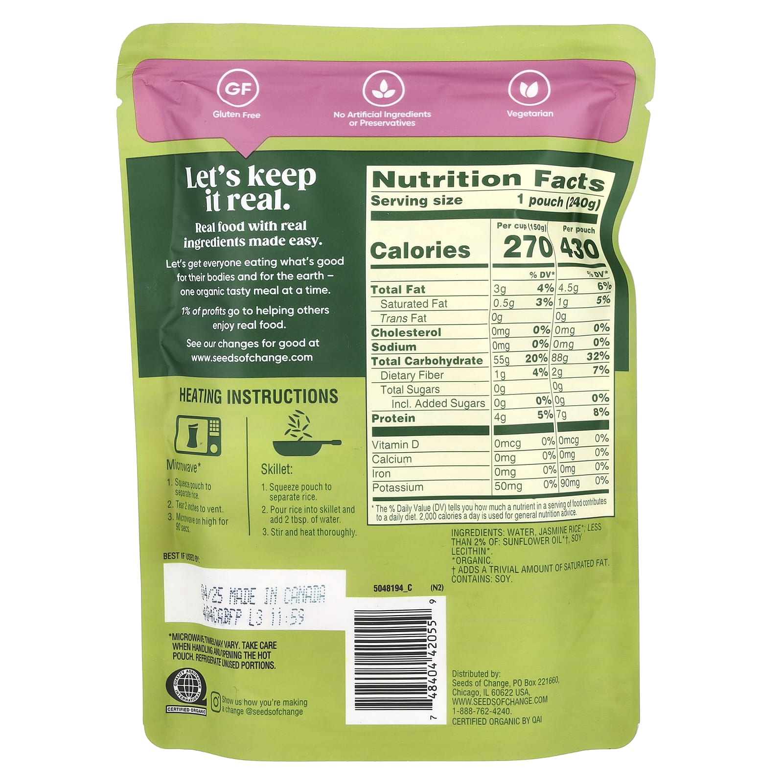 Вода, жасминовый рис *; менее 2% подсолнечного масла * †, соевый лецитин *.