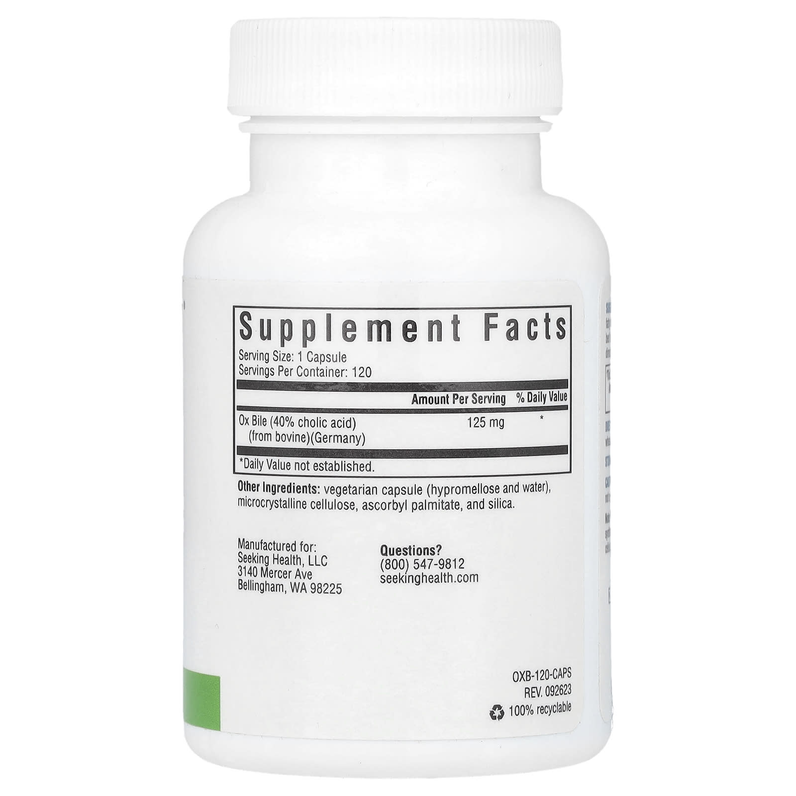 Бычья желчь содержит 125 мг чистой желчи крупного рогатого скота, живущего на свободном выгуле. Он содержит 40% холевой кислоты для эффективного и целенаправленного переваривания жиров.