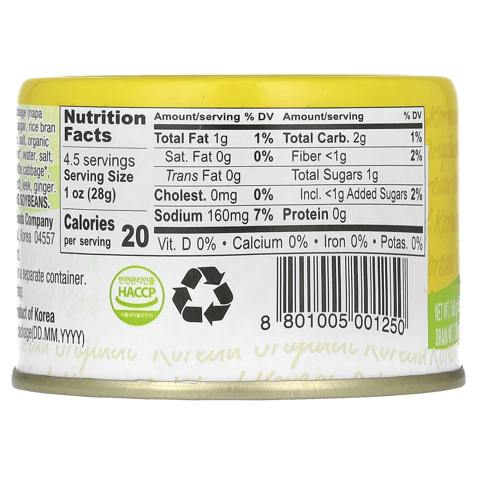 Соленая капуста напа (кочанная капуста, соль), вода, лук, сахара, масло из рисовых отрубей, порошок из красного перца, чеснок, соль, органическая соевая приправа* (соевые бобы*, вода, соль, рис*, белый редис*, лук-порей*, белокочанная капуста*, шиитаке* чеснок*, экстракт дрожжей), лук-порей, имбирь.
