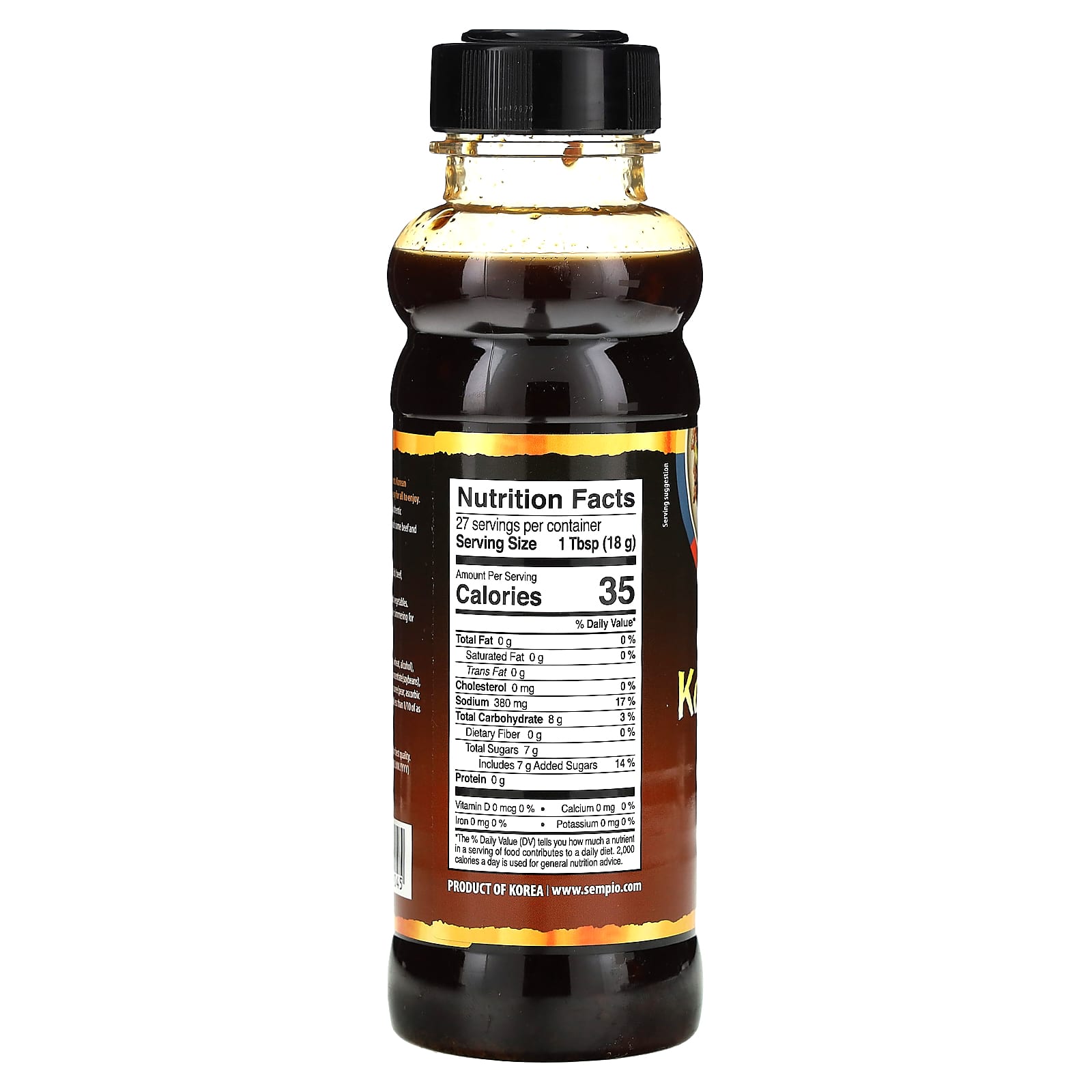 Натуральный соевый соус (обезжиренные соевые бобы, пшеницу, спирт), вода, сахара, кукурузного сиропа с высоким содержанием фруктозы, чеснок, соль, концентрат соевых пептидов (соя), уксус (вода, спирт, глюкоза, ячменя, коричневый сахар), грушевое пюре (грушевый, аскорбиновая кислота), имбирь, черный перец, ксантановая камедь, бензоат натрия (менее 1/10 в качестве консерванта).