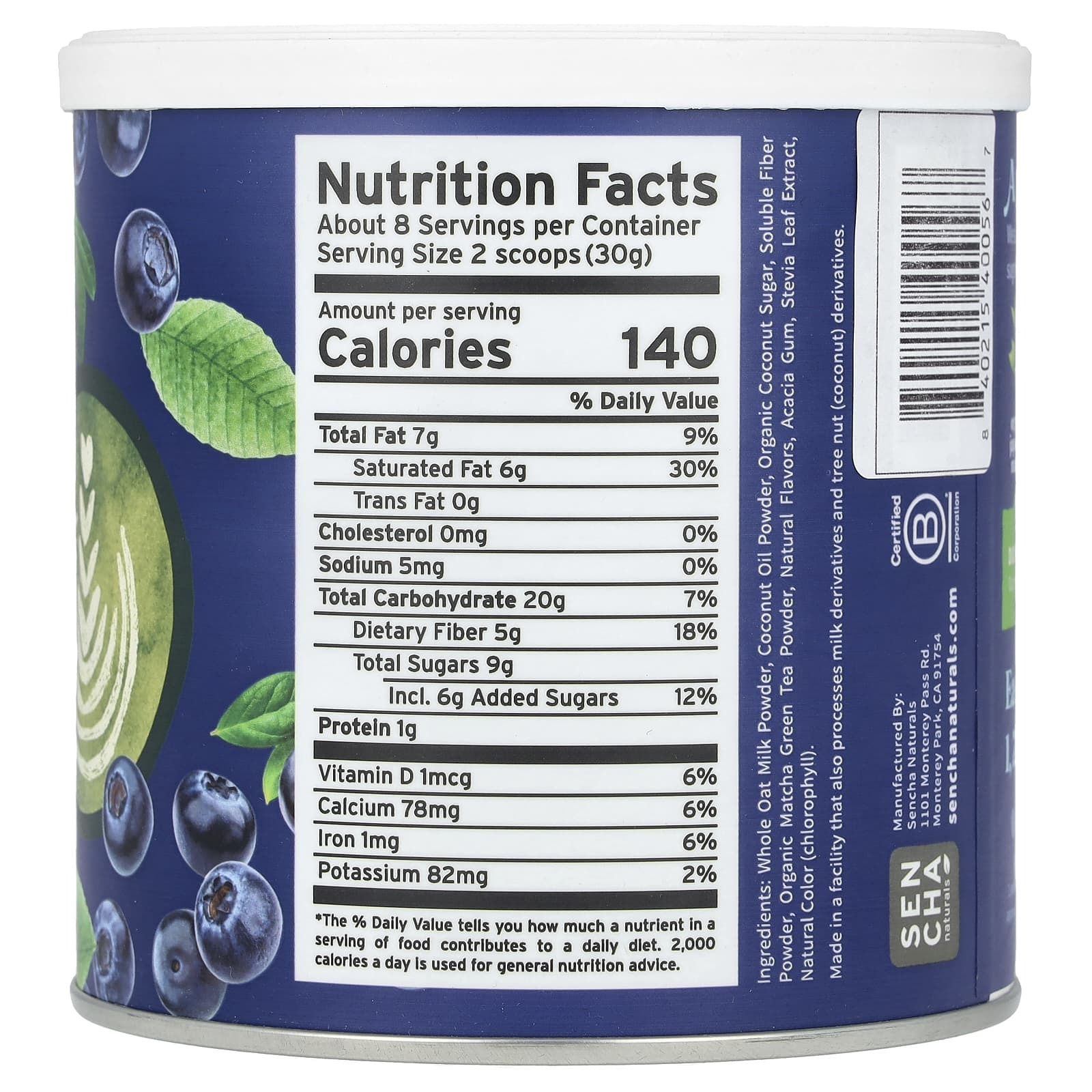 Сухое цельное овсяное молоко, порошок из кокосового масла, органический кокосовый сахар, порошок из растворимой клетчатки, органический зеленый чай матча в порошке, натуральные ароматизаторы, аравийская камедь, экстракт листьев стевии, натуральный краситель (хлорофилл).