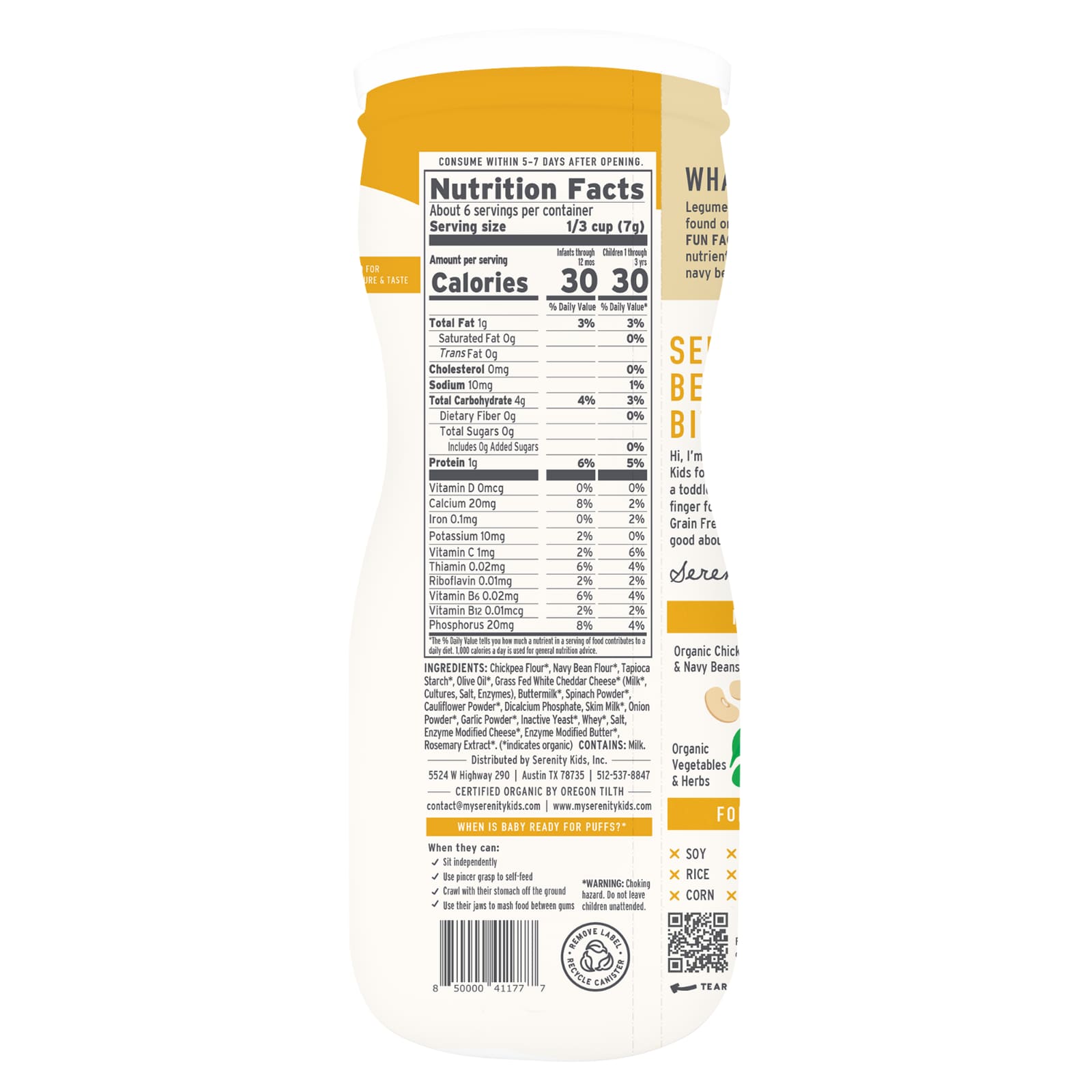 Нутовая мука*, мука из фасоли*, тапиоковый крахмал*, оливковое масло*, белый сыр чеддер травяного откорма* (молоко*, закваска, соль, ферменты), пахта*, порошок из шпината*, порошок из цветной капусты*, дикальций фосфат, обезжиренное молоко*, порошок из лука*, чесночный порошок*, неактивные дрожжи*, сыворотка*, соль, сыр, модифицированный ферментами*, масло, модифицированное ферментами*, экстракт розмарина*.