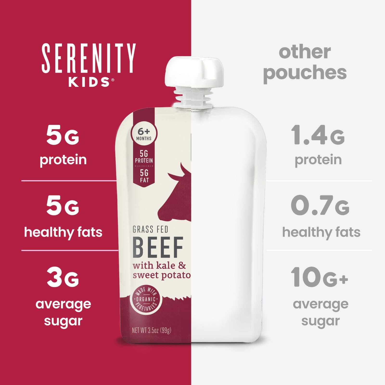 Органический батат, говядина травяного откорма, вода, органическая листовая капуста.