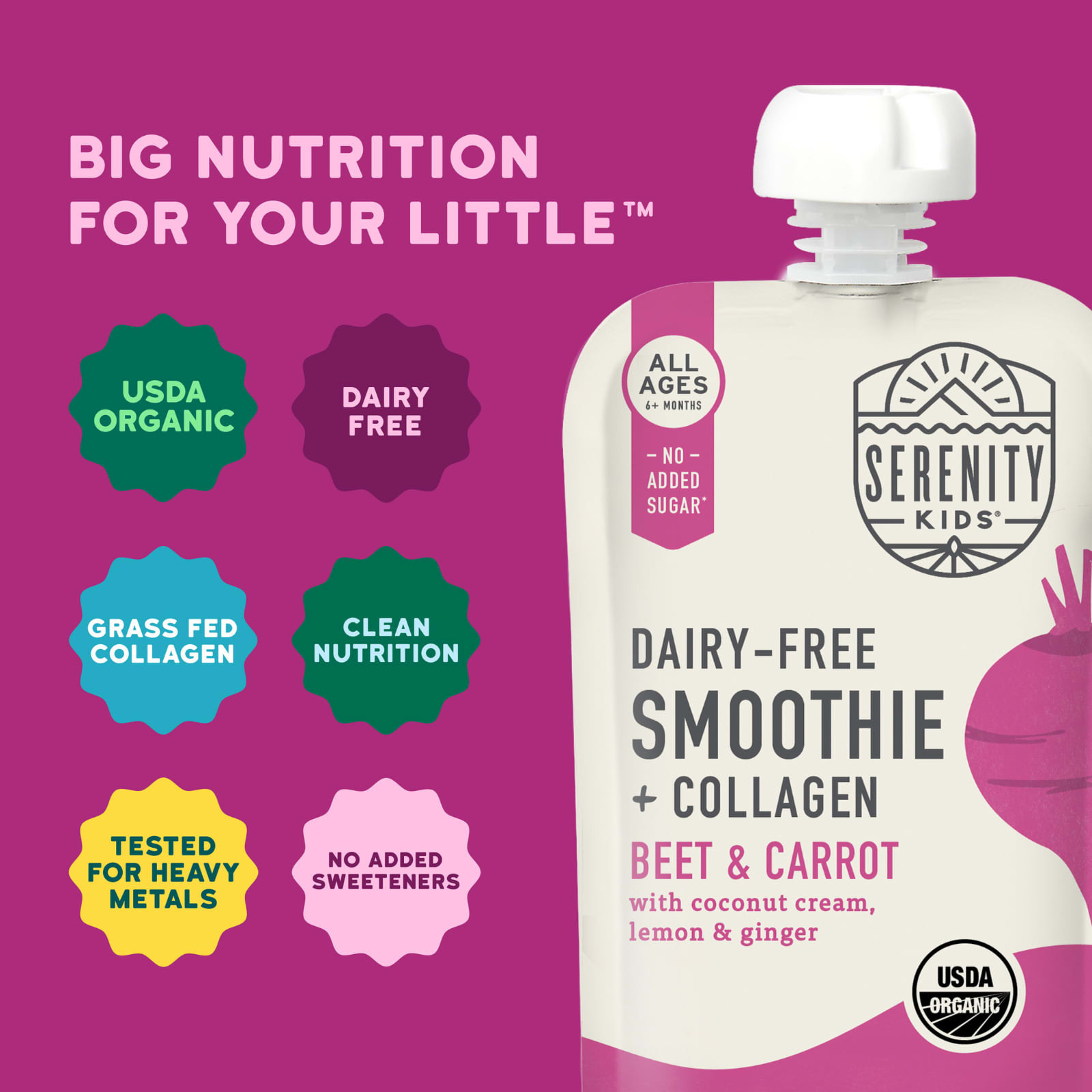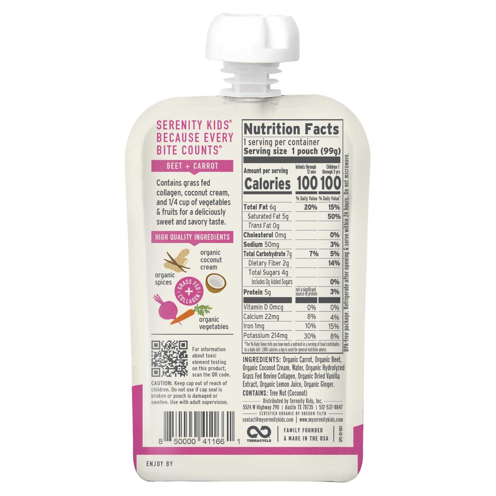 Органическая морковь, органическая свекла, органические кокосовые сливки, вода, гидролизованный бычий коллаген травяного откорма, органический сушеный экстракт ванили, органический лимонный сок, органический имбирь.