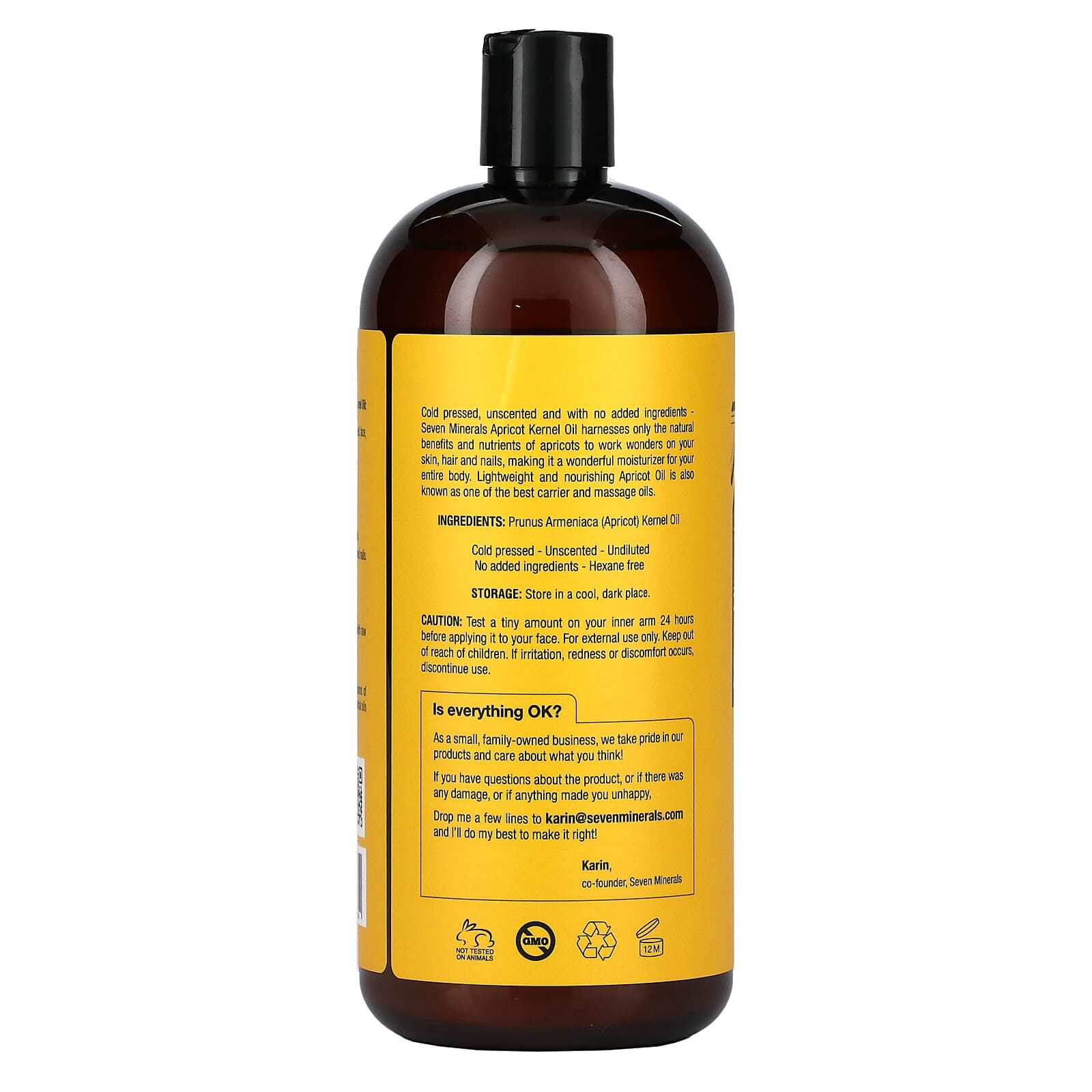 Масло из косточек абрикоса Seven Minerals без запаха и добавленных ингредиентов холодного отжима использует только натуральные преимущества и питательные вещества абрикоса, творит чудеса с вашей кожей, волосами и ногтями, делая его прекрасным увлажняющим средством для всего тела. Легкое и питательное абрикосовое масло также известно как одно из лучших масел-носителей и массажных масел.