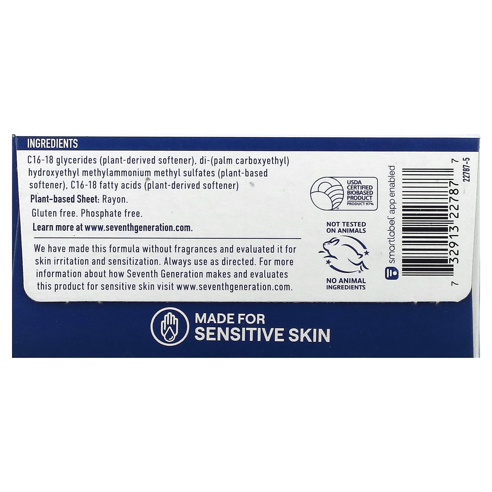 Тканевые кондиционеры для волос Seventh Generation делают одежду более мягкой и снижают статическую статику. В их состав входят растительные ингредиенты, которые на 97% имеют сертификат USDA Bio на основе возобновляемых источников энергии. Мы уверены, что вы оцените этот продукт. Поскольку все потребители должны знать состав покупаемых ими продуктов, мы напечатаны ингредиентами прямо на упаковках, чтобы вы могли сделать осознанный выбор для своей семьи. Кроме того, наши бесплатные и прозрачные тканевые кондиционеры для волос протестированы дерматологами и не содержат отдушек.