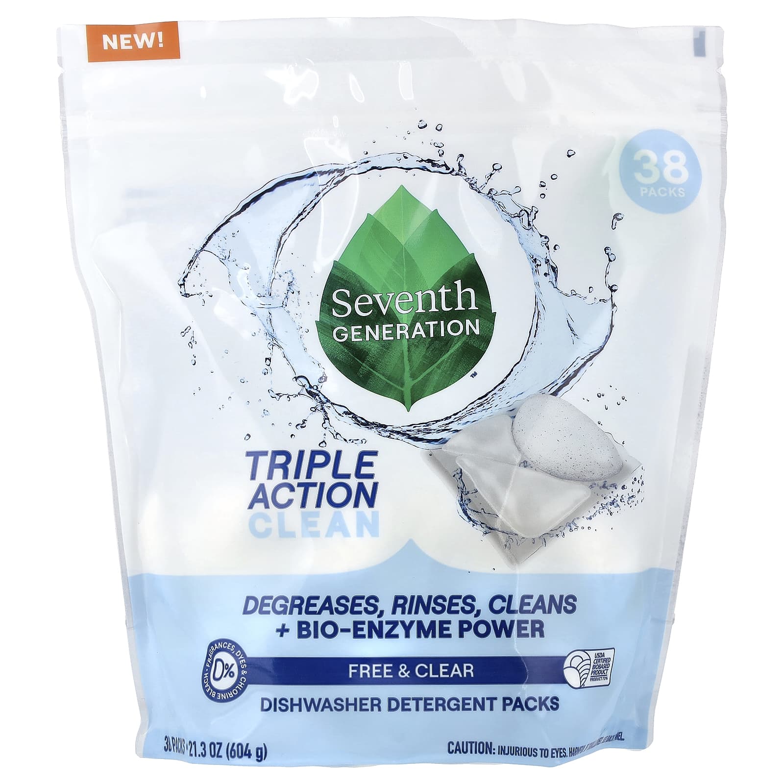 Добавление моющего средства: поместите один пакетик в стакан основного дозатора и закройте дозатор. Для очень жесткой воды рекомендуем использовать ополаскиватель Seventh Generation.