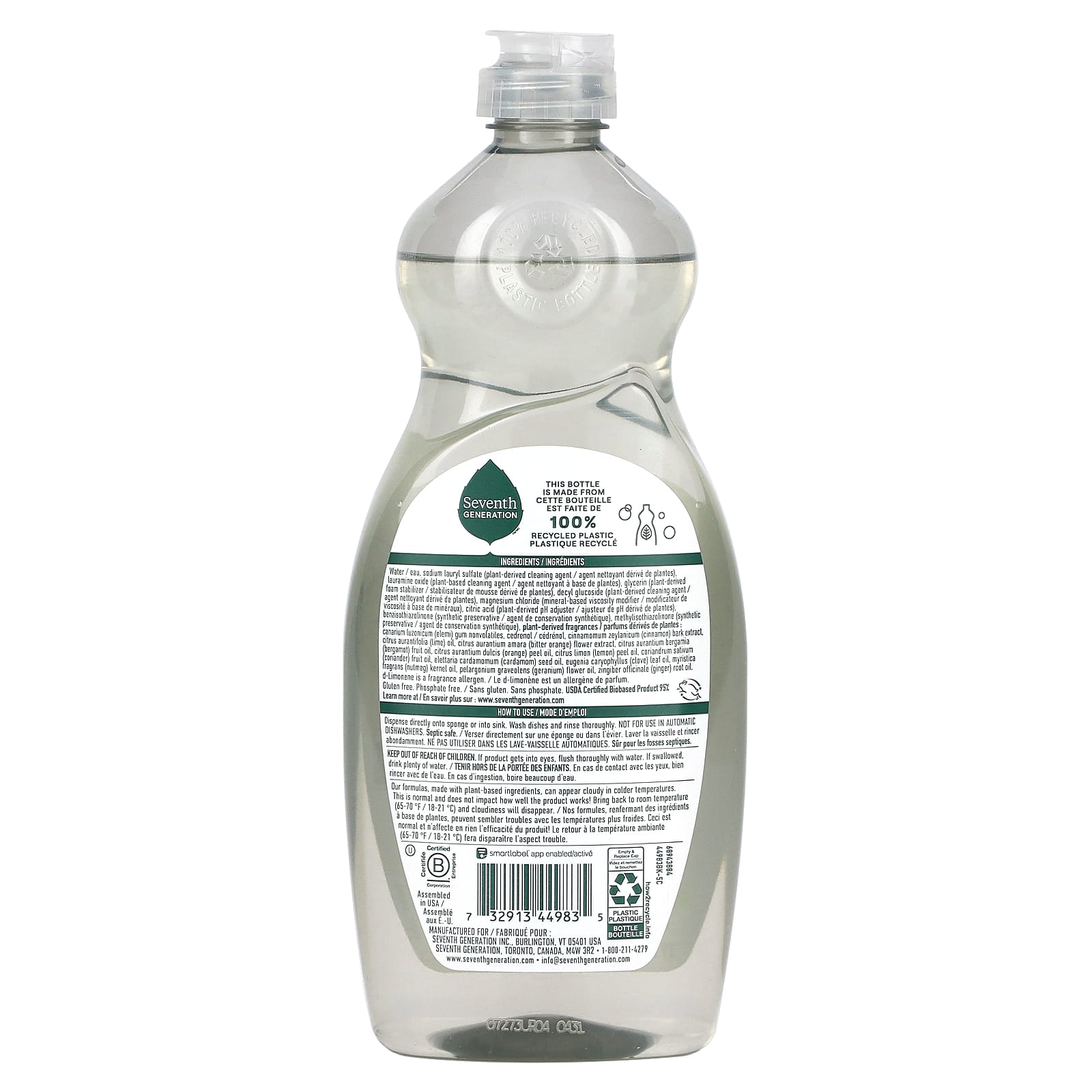 Средство для мытья посуды с ароматом свежести лайма и имбиря от Seventh Generation — это продукт на биологической основе, сертифицированный USDA, на 95% состоящий из возобновляемых ингредиентов. Наша действенная формула изготовлена без использования красителей и искусственных ароматизаторов, а свежий аромат лайма и имбиря состоит из полностью эфирных масел и растительных ингредиентов. Почувствуйте запах и наслаждайтесь. Наши средства для мытья посуды имеют сертификат EPA Safer Choice Certified, чтобы быть более безопасным для вашей семьи, а также сертификат Leaping Bunny за то, что продукт не тестируется на животных.