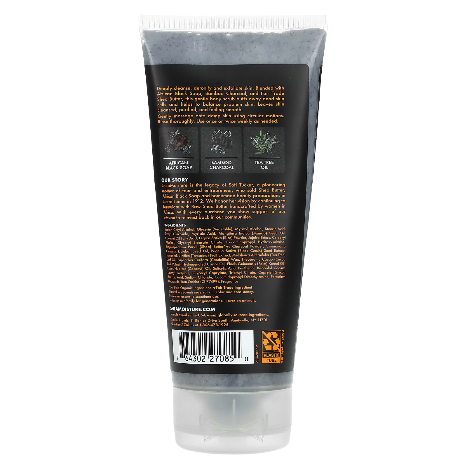 Глубоко очищает, выводит токсины и отшелушивает кожу. Этот нежный скраб для тела, содержащий африканское черное мыло, бамбуковый уголь и масло ши, приобретенное на основе принципов справедливой торговли, отшелушивает омертвевшие клетки кожи и помогает улучшить состояние проблемной кожи. Очищает кожу и делает ее гладкой.