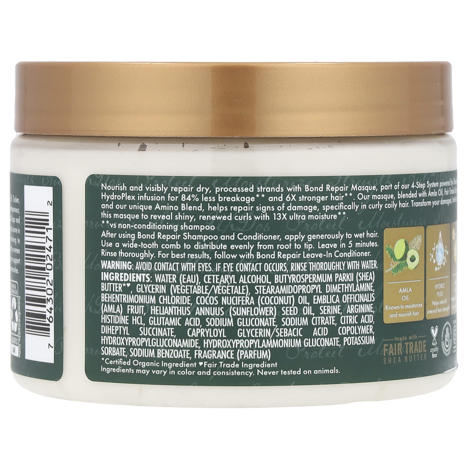 Питайте и заметно восстанавливайте сухие обработанные пряди с помощью восстанавливающей маски Bond Repair Masque, входящей в нашу 4-этапную систему на основе настойки SheaMoisture HydroPlex, которая на 84% уменьшает ломкость ** и в 6 раз сильнее укрепляет волосы **. Наша маска, смешанная с маслом амлы, маслом ши, приобретенным по принципу справедливой торговли, и нашей уникальной смесью аминокислот помогает устранить признаки повреждений, особенно вьющихся кудрявых волос. Преобразите поврежденные, ломкие волосы с помощью этой маски, чтобы они стали сияющими, обновленными локонами благодаря 13-кратному увлажнению **.