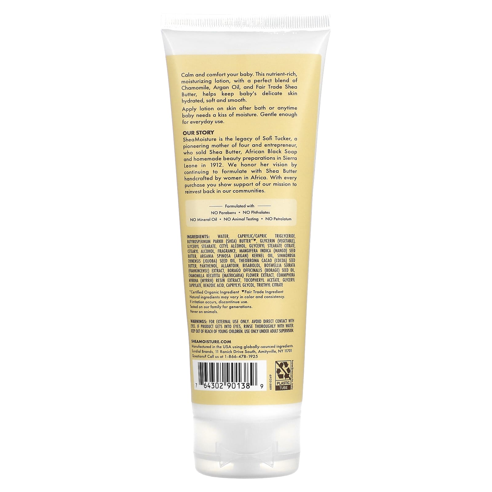 Успокойте вашего малыша. Этот богатый питательными веществами увлажняющий лосьон, содержащий ромашку, аргановое маслом и маслом ши, которое закупается на основе принципов справедливой торговли, помогает сохранять нежную кожу ребенка увлажненной, мягкой и гладкой.