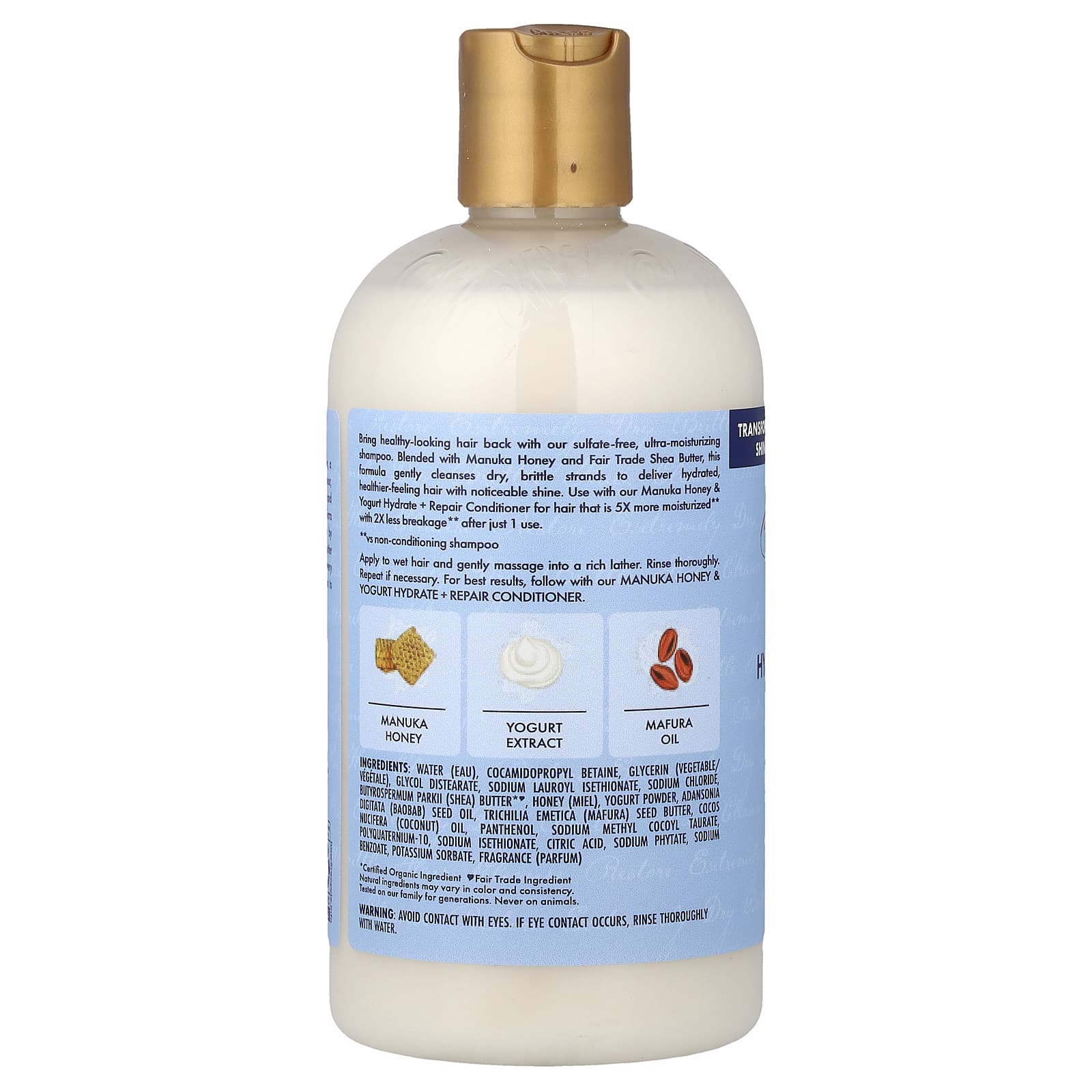 Верните волосам здоровый вид с помощью нашего ультраувлажняющего шампуня без сульфатов. Это средство, содержащее мед манука и масло ши, приобретенное на основе принципов справедливой торговли, мягко очищает сухие и ломкие пряди, делая волосы увлажненными, здоровыми и придавая им заметный блеск. Используйте вместе с нашим увлажняющим и восстанавливающим кондиционером с медом манука и йогуртом, чтобы волосы стали в 5 раз более увлажненными** и в 2 раза меньше ломкости** уже после первого применения.