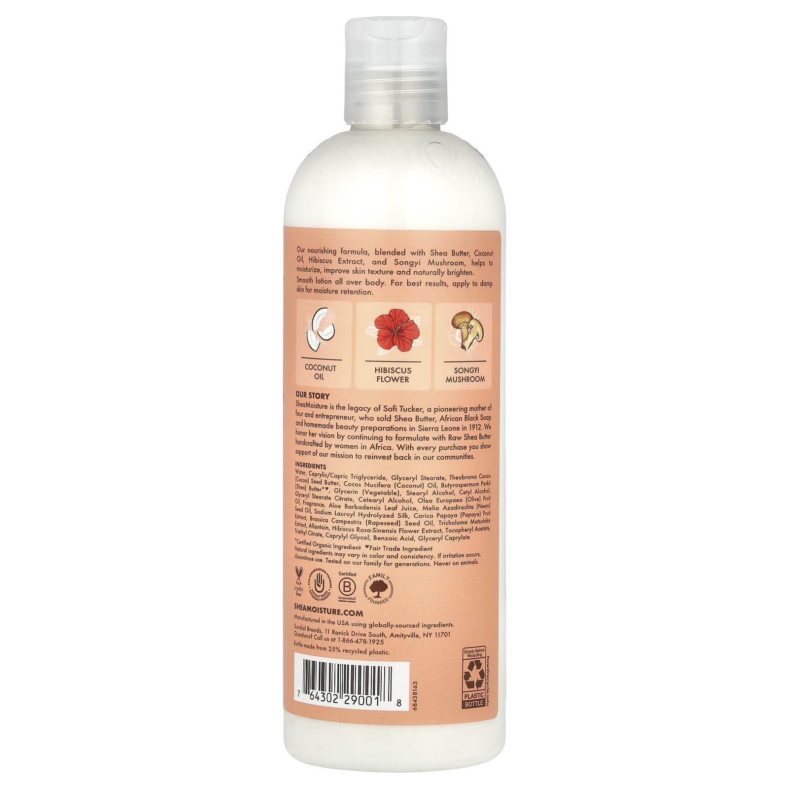Наша питательная формула с маслом ши, кокосовым маслом, экстрактом гибискуса и грибом сонги глубоко увлажняет, улучшает текстуру кожи и естественным образом осветляет ее.