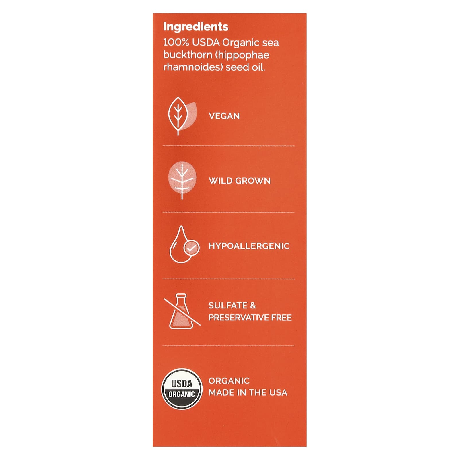 100% органическое масло семян облепихи терапевтического качества.