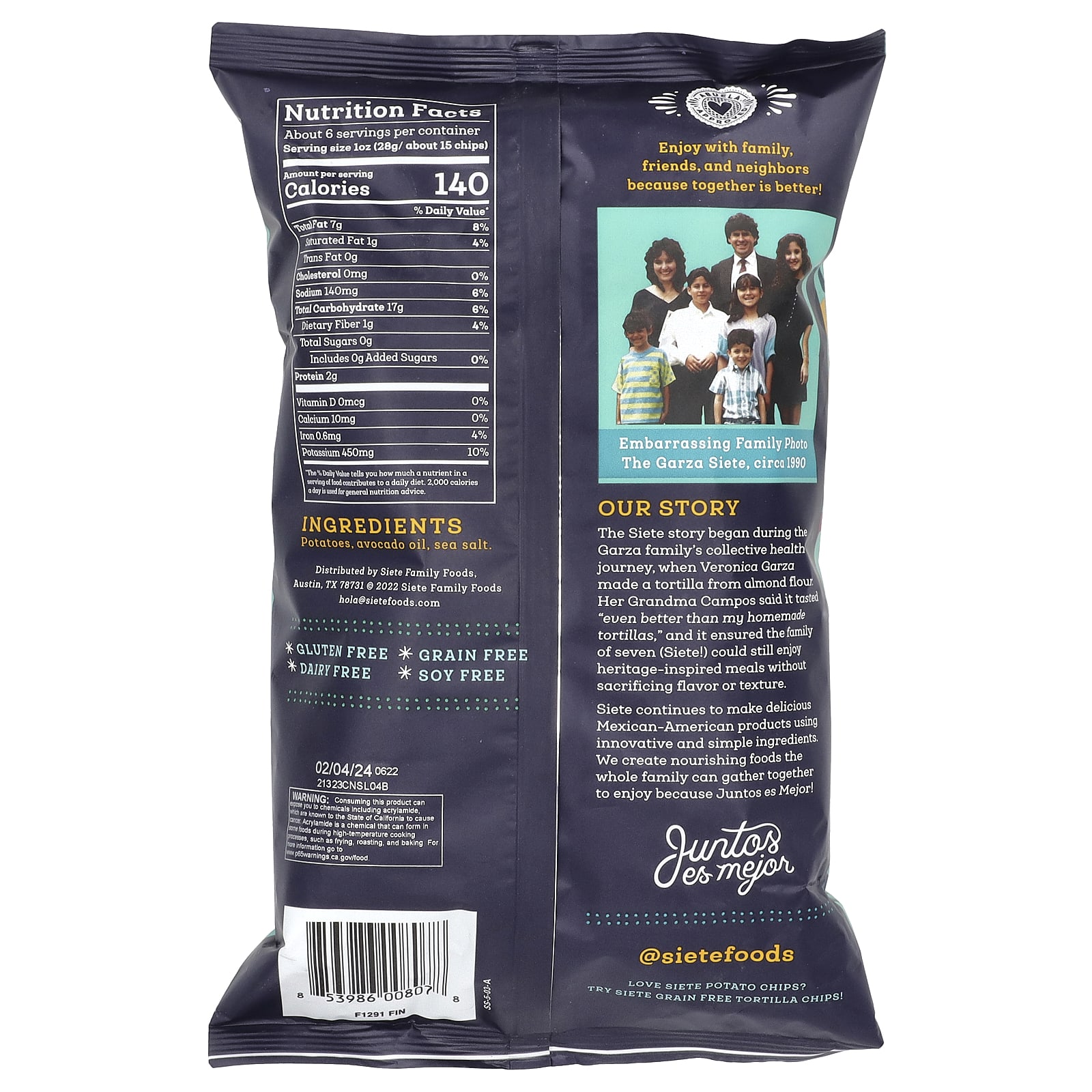 Siete продолжает производить вкусные продукты мексиканского и американского происхождения, используя инновационные и простые ингредиенты. Мы создаем питательные продукты, которые может собирать вся семья, потому что Juntos es Mejor!