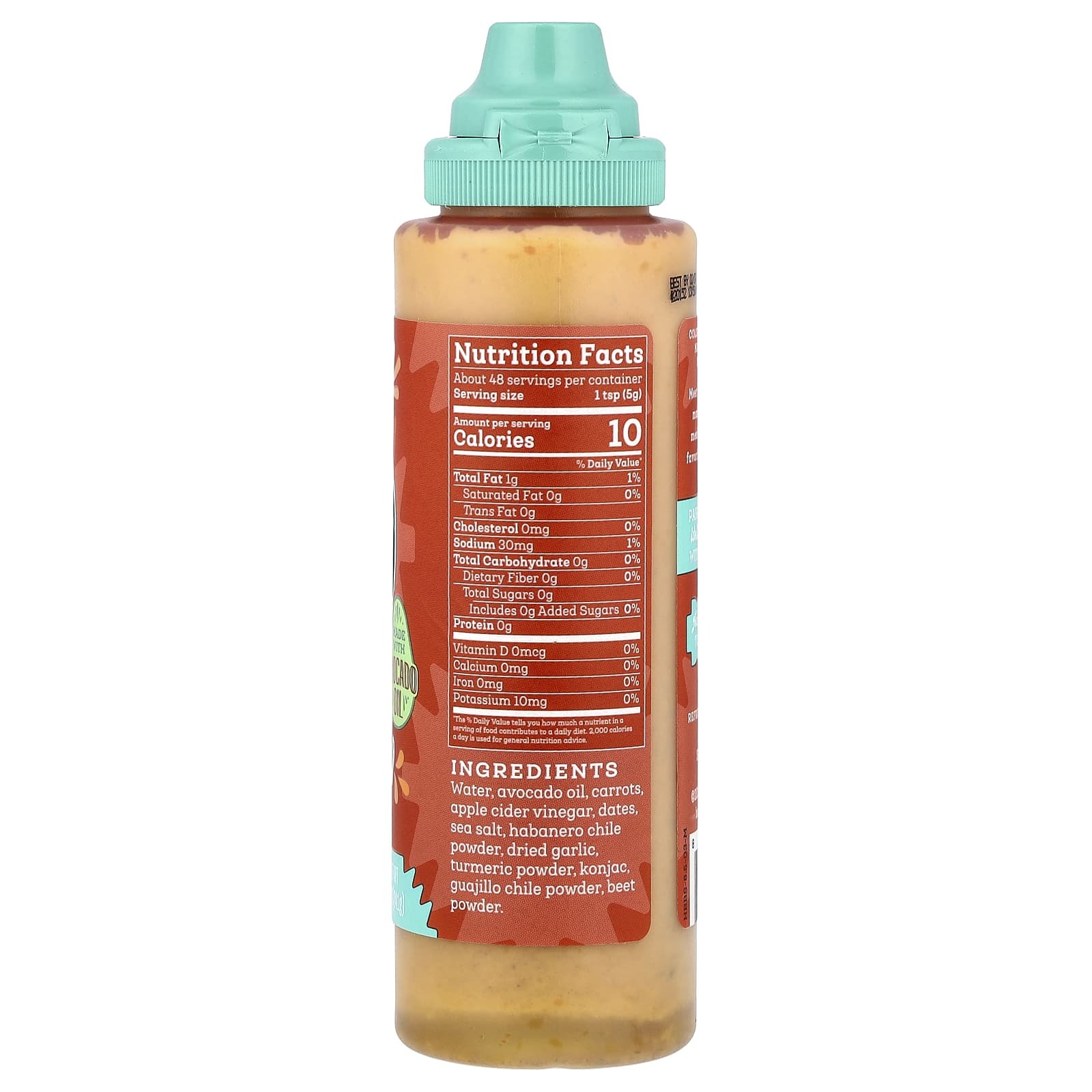 Вода, масло авокадо, морковь, яблочный уксус, финики, морская соль, порошок из чили хабанеро, сушёный чеснок, порошок из куркумы, конжак, порошок из чили гуахильо, свекольный порошок.