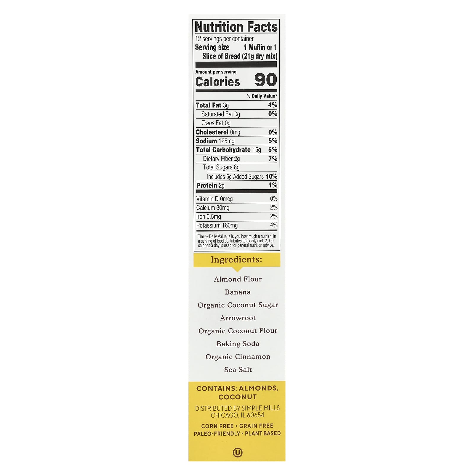 Миндальная мука, банан, органический кокосовый сахар, аррорут, органическая кокосовая мука, пищевая сода, органическая корица, морская соль.