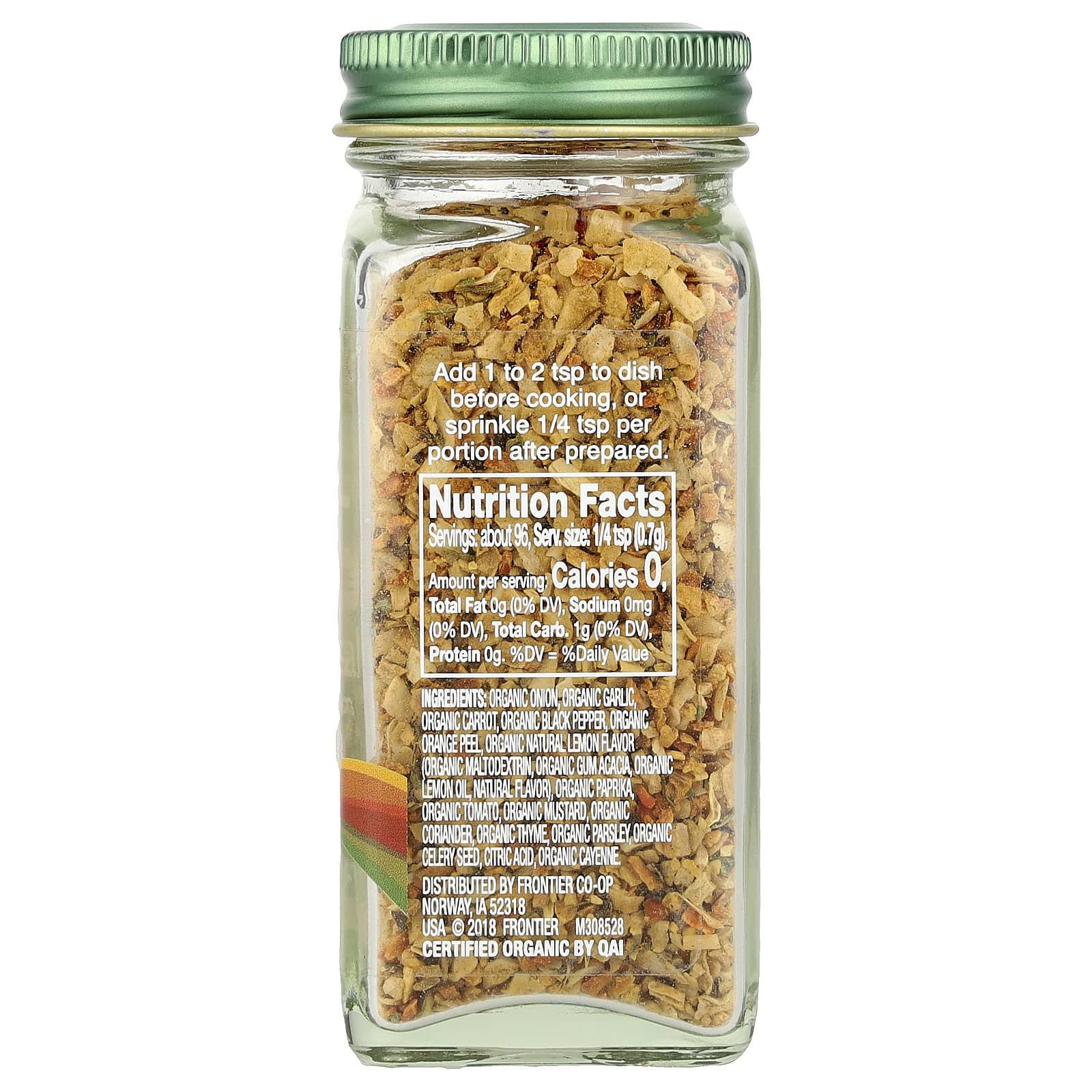 Органический лук, органический чеснок, органическая морковь, органический черный перец, органическая цедра апельсина, органический натуральный лимонный ароматизатор (органический мальтодекстрин, органическая аравийская камедь, органическое масло лимона, натуральный ароматизатор), органическая паприка, органический томат, органическая горчица, органический кориандр, органический тимьян, органическая петрушка, семена органического сельдерея, лимонная кислота, органический кайенский перец.