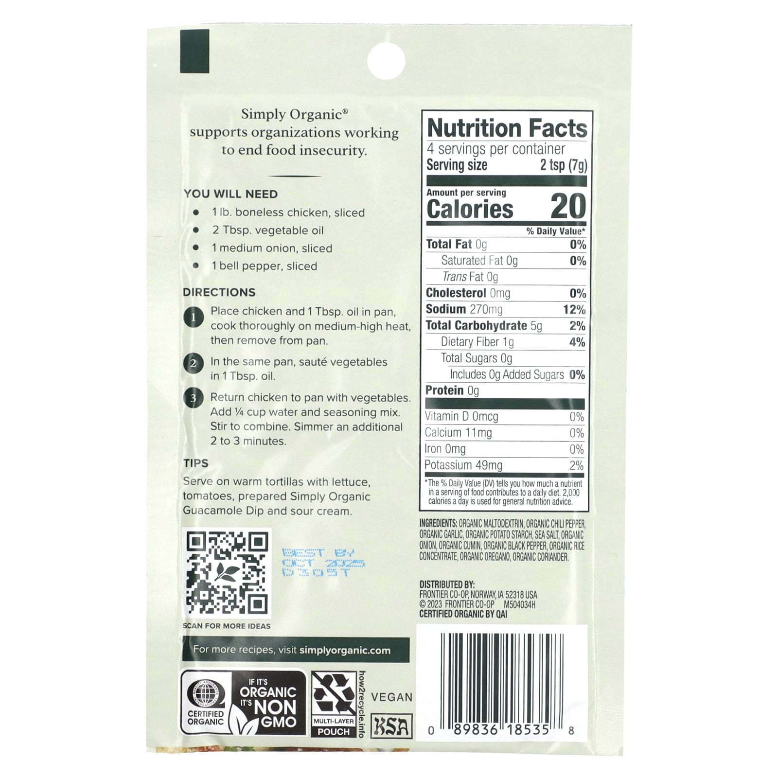 В техасско-мексиканской кухне фахита — это общий термин, обозначающий мясо-гриль на муке или кукурузной тортилье. Однако нет ничего стандартного в фахита, приготовленном из смеси фахита Simply Organic. Необходимое количество специй, включая перец чили, чеснок, зиру и кориандр, оживит ваш фахитас.