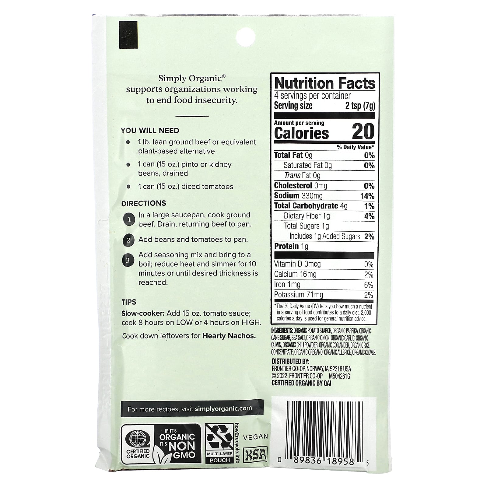 Simply Organic® использует ингредиенты, выращенные и обработанные без использования токсичных пестицидов, облучения, или генетически модифицированных продуктов.