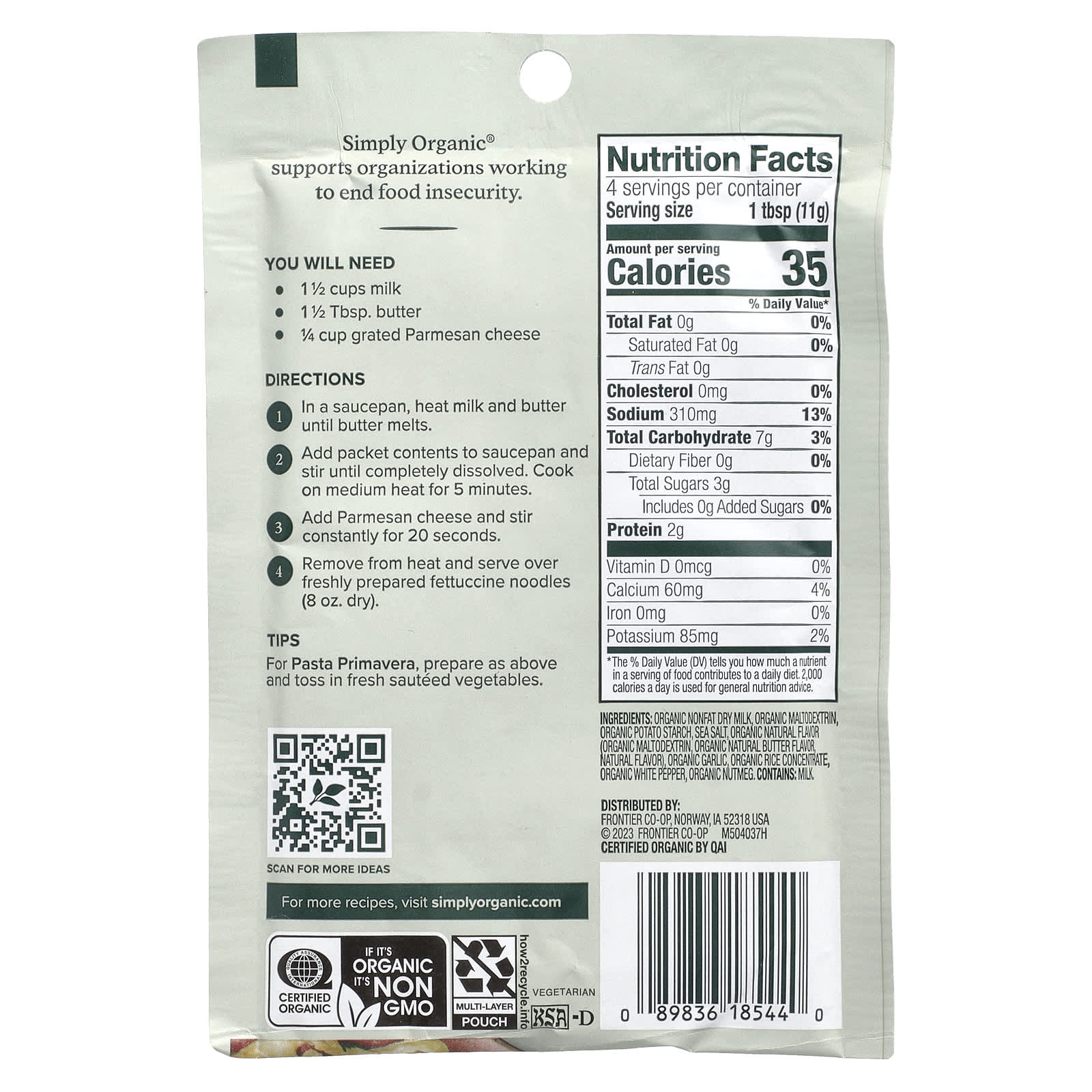 Органическое обезжиренное сухое молоко, органический мальтодекстрин, органический картофельный крахмал, морская соль, органический натуральный ароматизатор, органический мальтодекстрин, органический натуральный ароматизатор «Масло», натуральный ароматизатор), органический чеснок, органический рисовый концентрат, органический белый перец, органический мускатный орех.