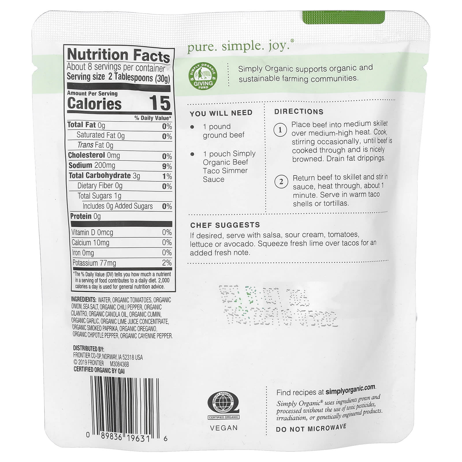- 1 пакетик соуса для тако с говядиной от Simply Organic