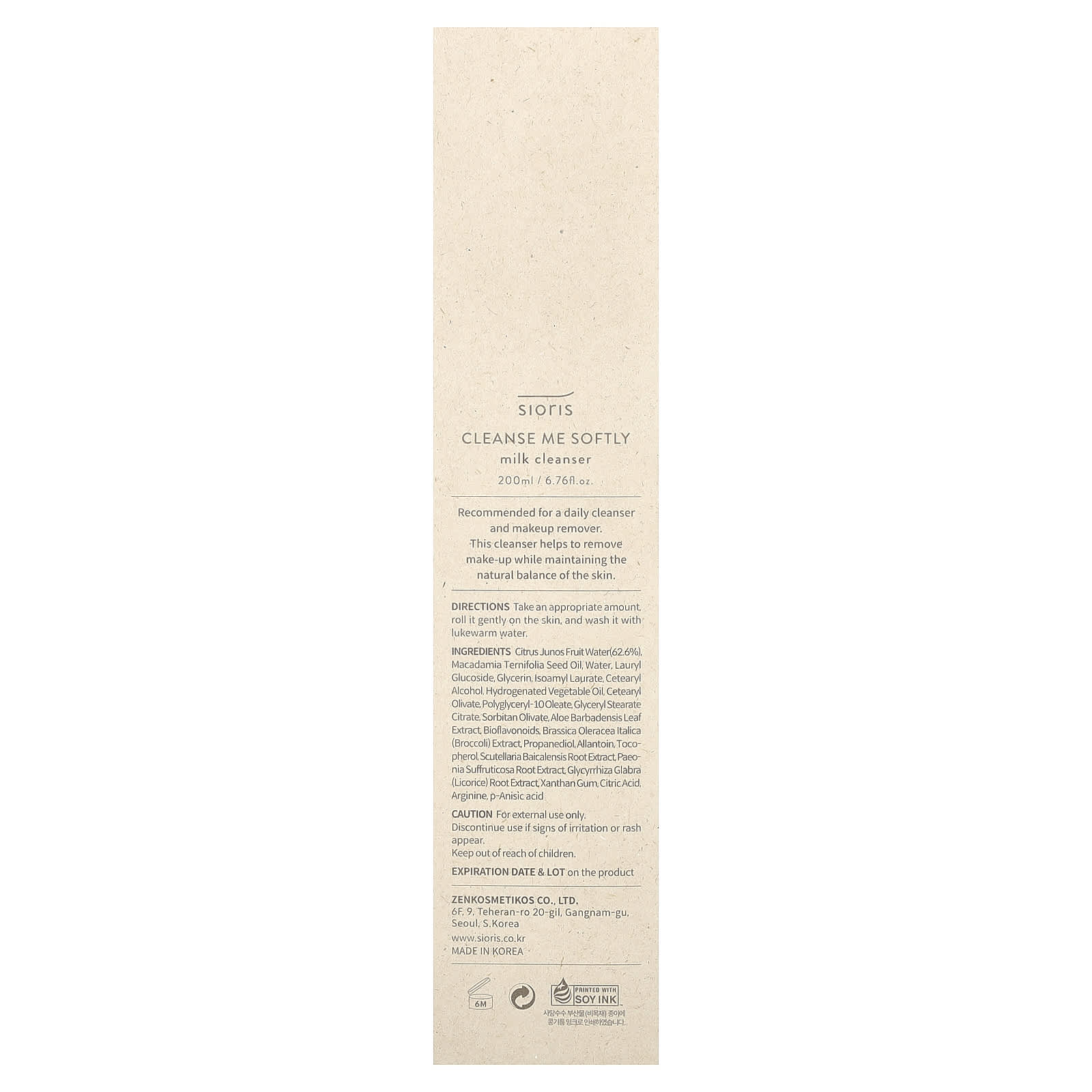 Вода из плодов юдзу (Citrus junos) (62,6%), Масло семян макадамии тернифолии, Вода, лаурил глюкозид, глицерин, изоамил лаурат, Цетеариловый спирт, гидрогенизированное растительное масло, цетеарилоливат, полиглицерил-10 олеат, глицерил стеарат цитрат, сорбитан оливат, Экстракт листьев алоэ барбаденсис, биофлавоноиды, экстракт брокколи (Brassica oleracea italica), пропандиол, Аллантоин, Токоферол, экстракт корня шлемника (Scutellaria baicalensis), экстракт корня пиона (Paeonia suffruticosa), Экстракт корня солодки, Ксантановая камедь, лимонная кислота, аргинин, п-анисовая кислота.