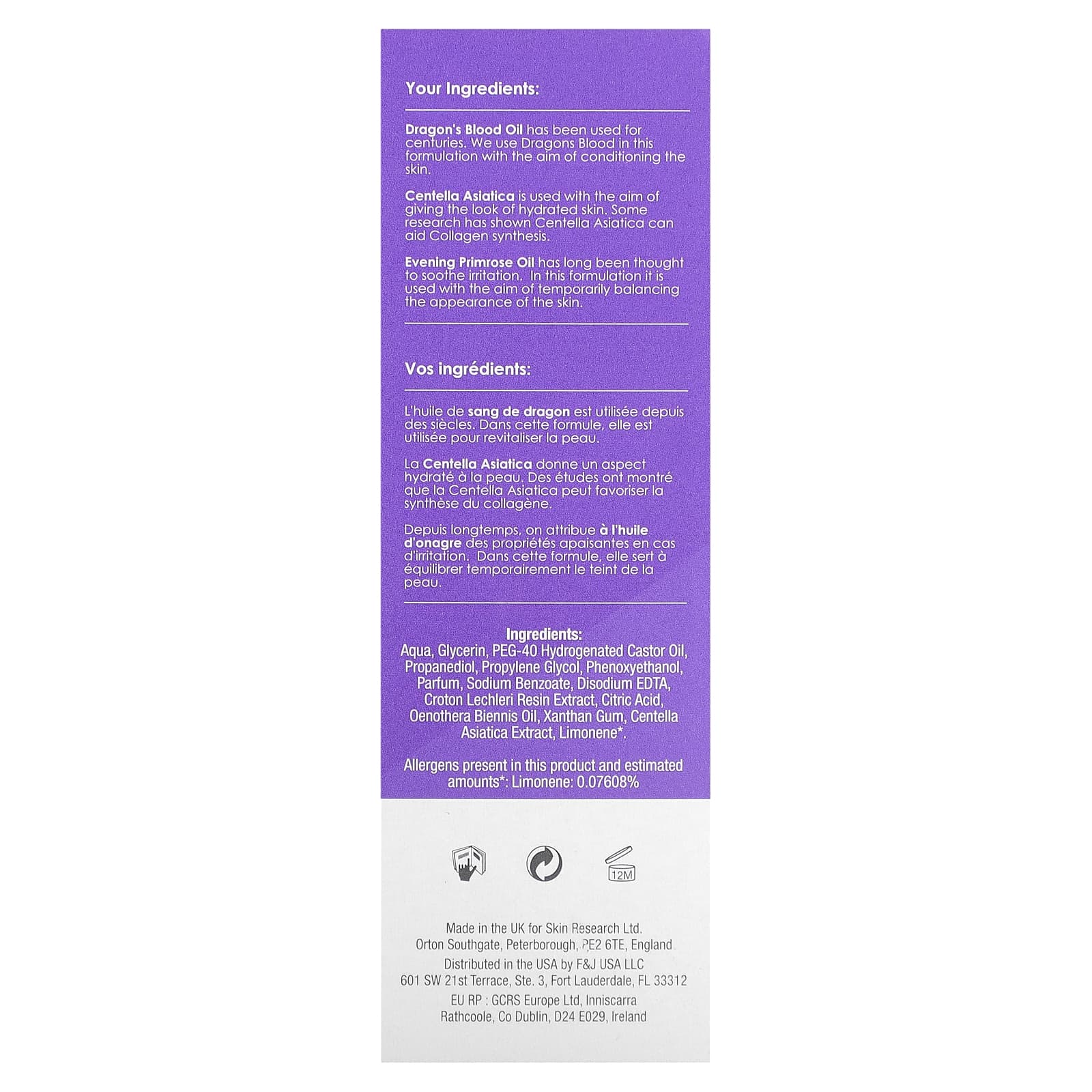 - Масло крови дракона использовалось веками. В этом составе мы используем Dragons Blood, чтобы увлажнить кожу.