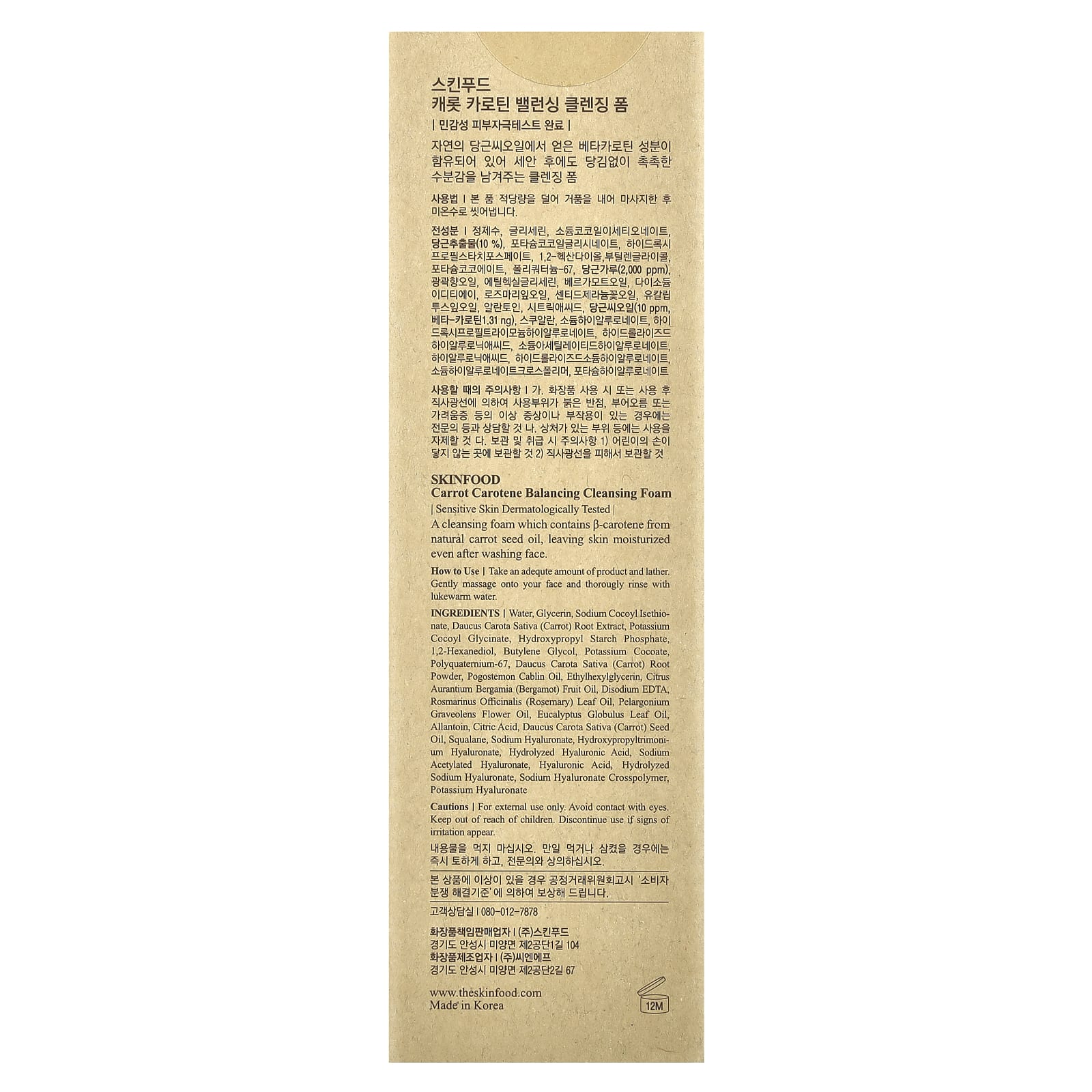 Очищающая пенка с бета-каротином из натурального масла семян моркови сохраняет кожу увлажненной даже после умывания.