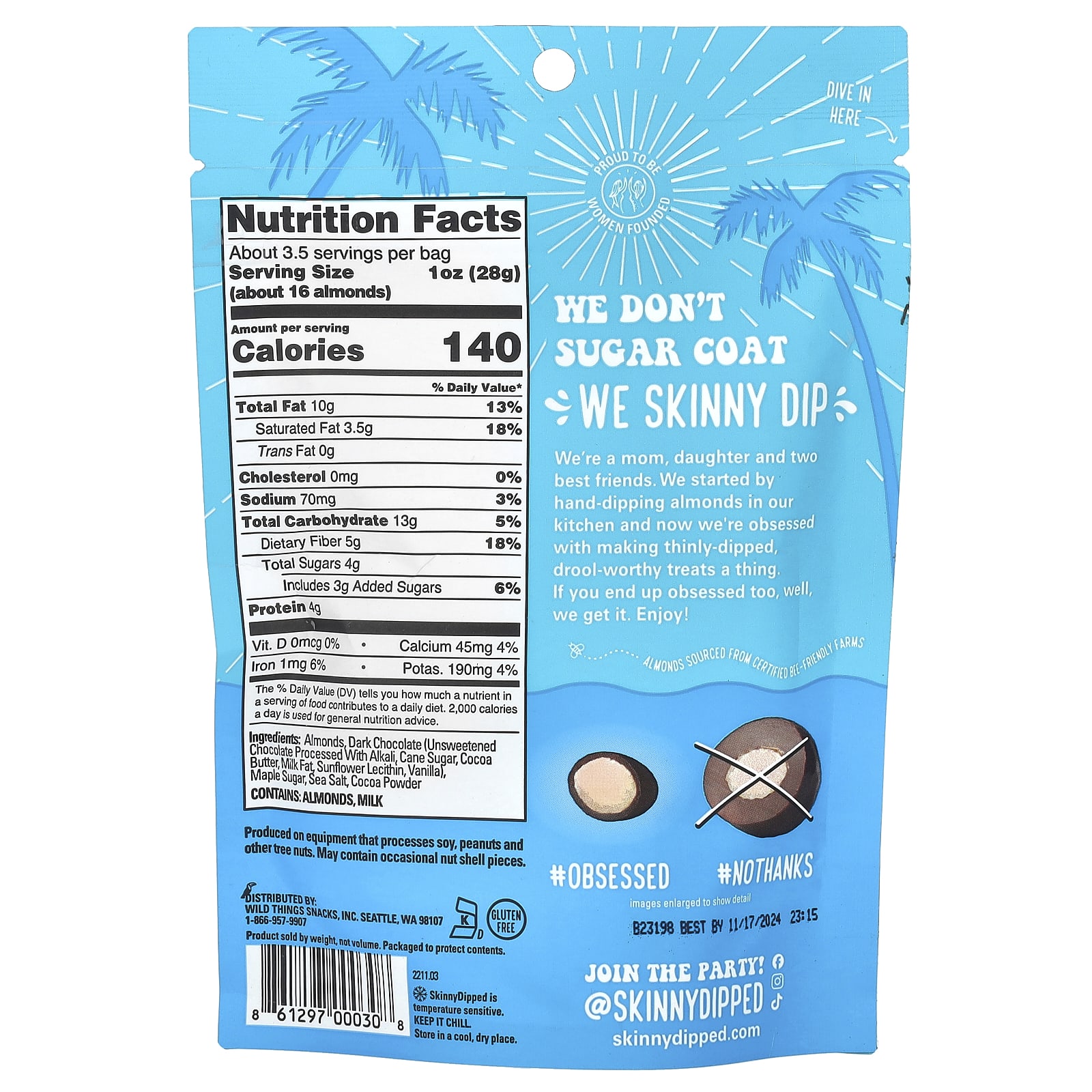 Данный продукт продается по весу, а не по объему. Упаковано для защиты содержимого. SkinnyDipped чувствителен к температуре. Хранить в холодильнике. Хранить в сухом и прохладном месте.