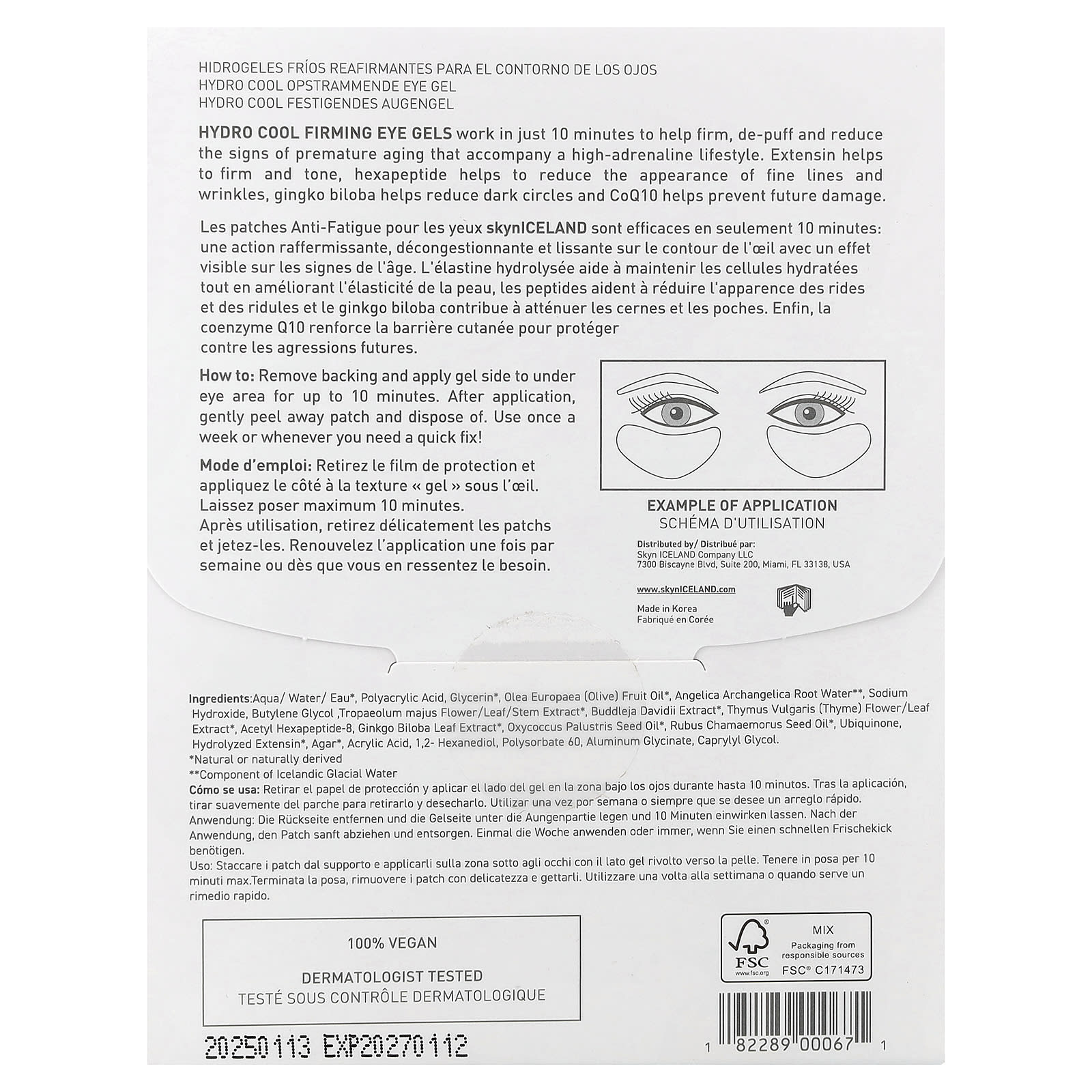Охлаждающие увлажняющие гели для кожи вокруг глаз Hydro Cool укрепляют кожу всего за 10 минут, помогая повысить упругость кожи, снять отечность и уменьшить признаки преждевременного старения, сопровождающие образ жизни с высоким содержанием адреналина. Экстензин помогает укрепить и тонизировать кожу, гексапептид помогает визуально уменьшить мелкие и глубокие морщины, гинкго билоба помогает уменьшить темные круги, а коэнзим Q10 помогает предотвратить повреждения в будущем.