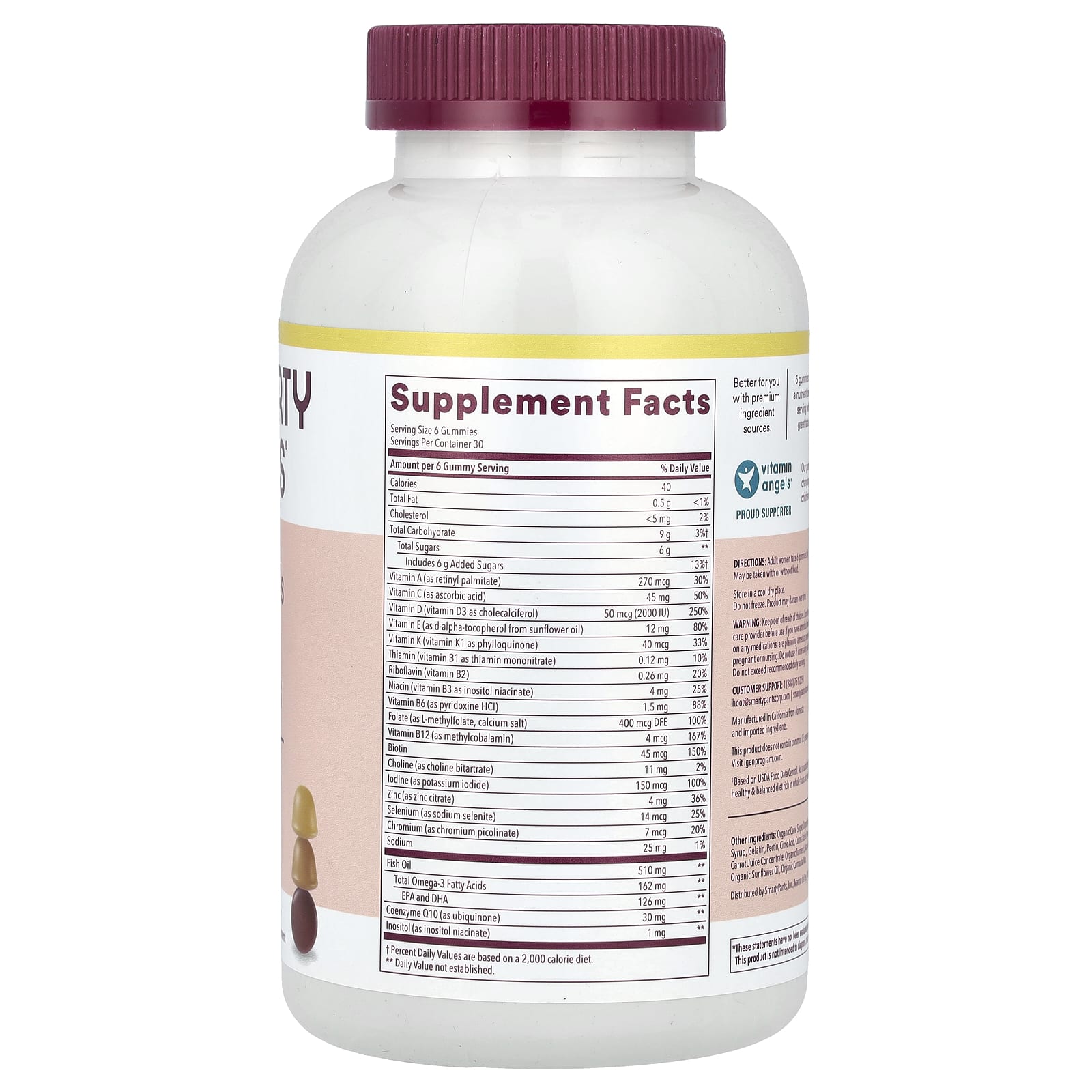 Содержит 21 питательное вещество для ежедневного приема, включая омега-3 ЭПК и незаменимые жирные кислоты ДГК, а также фолат в виде метилфолата. Содержит такие ингредиенты, как коэнзим Q10 для поддержки здоровья сердца, витамин D3 для здоровья костей и иммунитета, а также биотин для поддержания здоровья волос, кожи и ногтей - все в одной восхитительной формуле без ГМО.