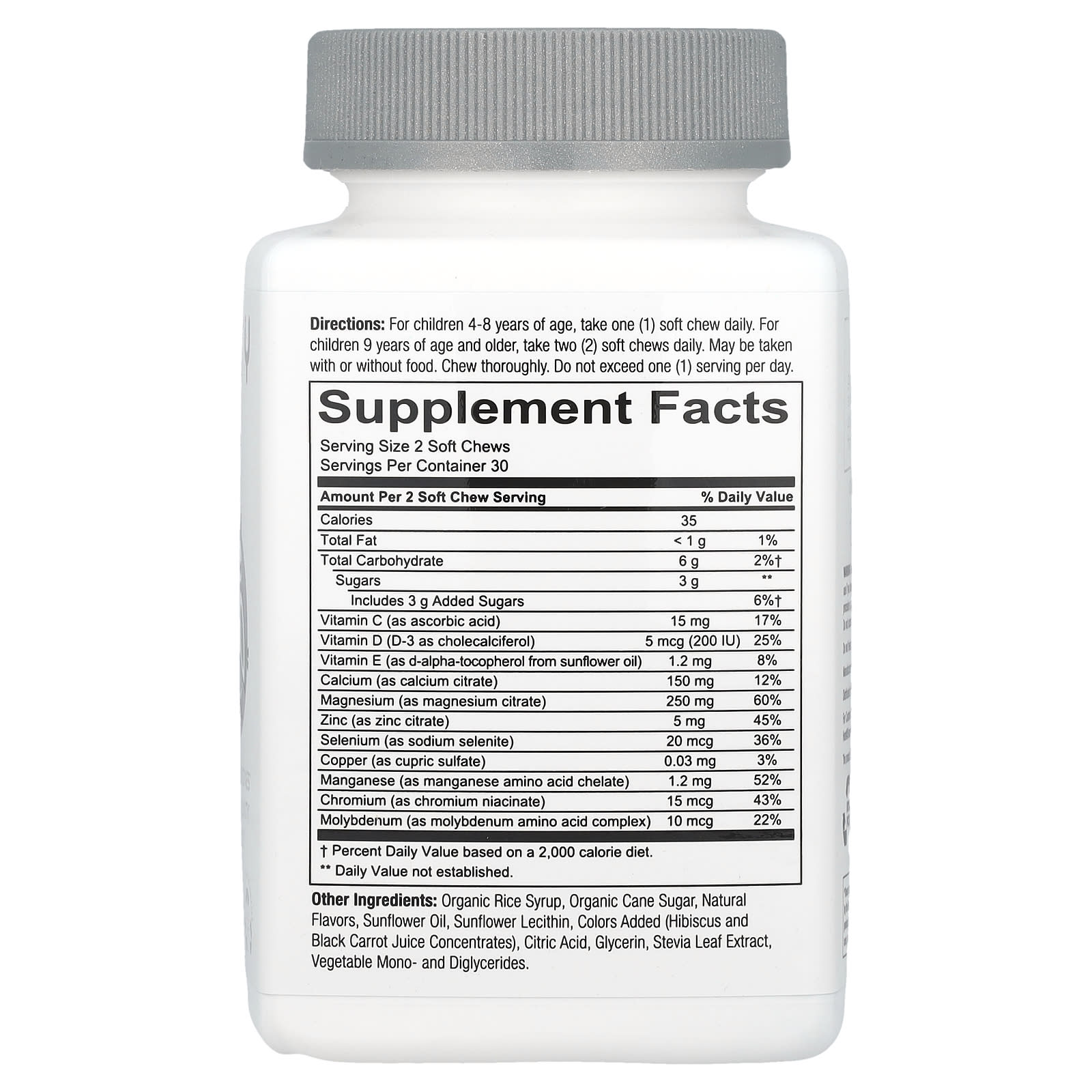 Детям 4–8 лет принимать одну (1) мягкую жевательную таблетку в день. Детям старше 9 лет принимать две (2) мягкие жевательные таблетки в день. Можно принимать независимо от приемоа пищи. Тщательно пережевывать. Не принимать больше одной (1) порции в день.