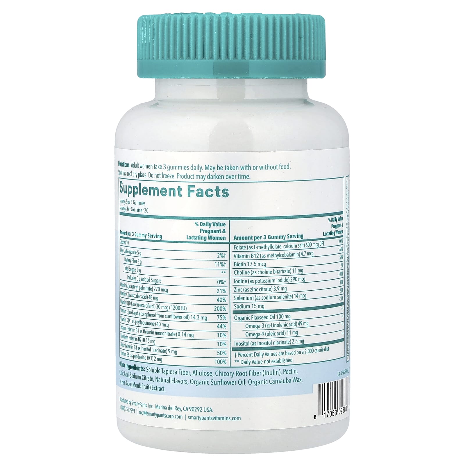 Пренатальные мультивитамины с омега без сахара - это жевательные мармеладки, созданные для поддержки здоровья мамы и ребенка. Этот комплекс обеспечивает ежедневное потребление питательных веществ, включая вегетарианские омега-3, полученные из органического льняного масла. Фолат добавлен для поддержки раннего развития плода. Кроме того, йод необходим для когнитивного развития ребенка, а витамины C и D - для поддержки иммунитета. Добавлен вкусный лимонный аромат, подслащенный монахами и аллюлозой, а также без сахарного спирта!