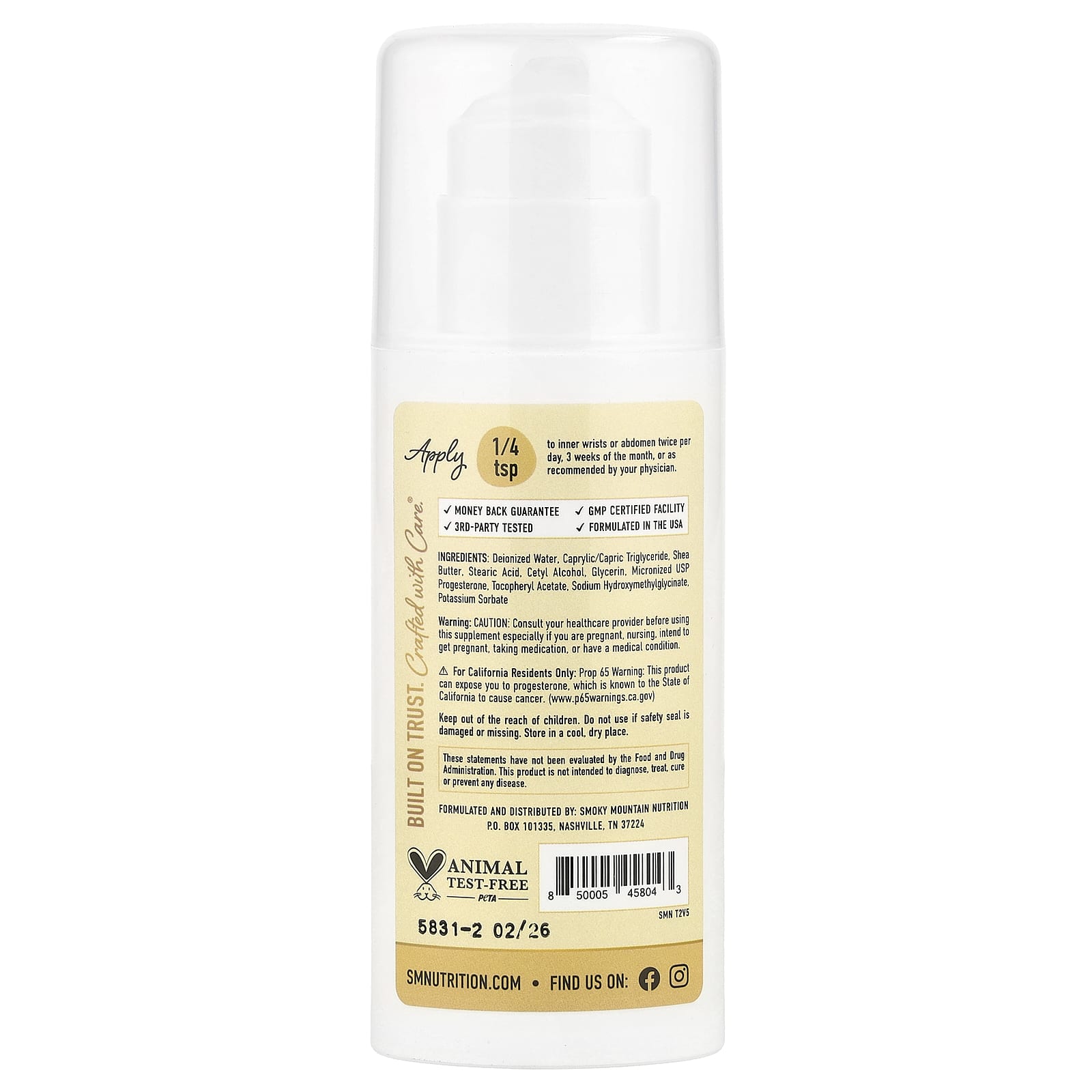Деионизированная вода, каприловый/каприновый триглицерид, масло ши, стеариновая кислота, цетиловый спирт, глицерин, микронизированный УСП прогестерон, токоферилацетат, гидроксиметилглицинат натрия. сорбат калия.