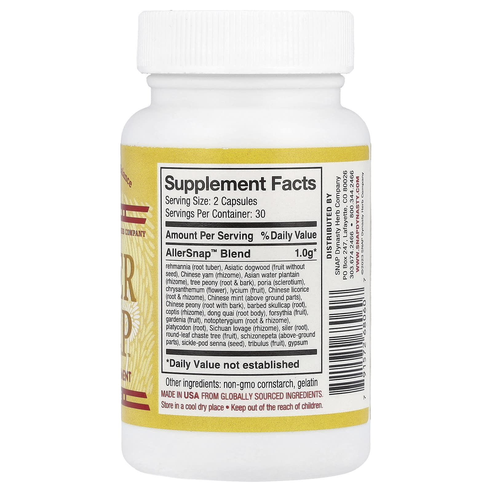 | Смесь AllerSnap ™ Реманния (корневой клубень), азиатский кизил (плоды без семян), китайский ямс (корневище), азиатский водный подорожник (корневище), древовидный пион (корень и кора), пория (склероций), хризантема (цветок), лиций (плоды), Солодка китайская (корень и корневище), мята китайская (надземные части), китайский пион (корень с корой), колючий шлемник (корень), коптис (корневище), донг (тело корня), форзиция (плоды), гардения (плоды ), нотоптеригиум (корень и корневище), платикодон (корень), сычуаньский любисток (корневище), силер (корень), целомудренное дерево с круглыми листьями (плоды), шизонепета (надземные части), серповидная сенна (семена), якорцы (плоды), гипс | 1,0 г | * |