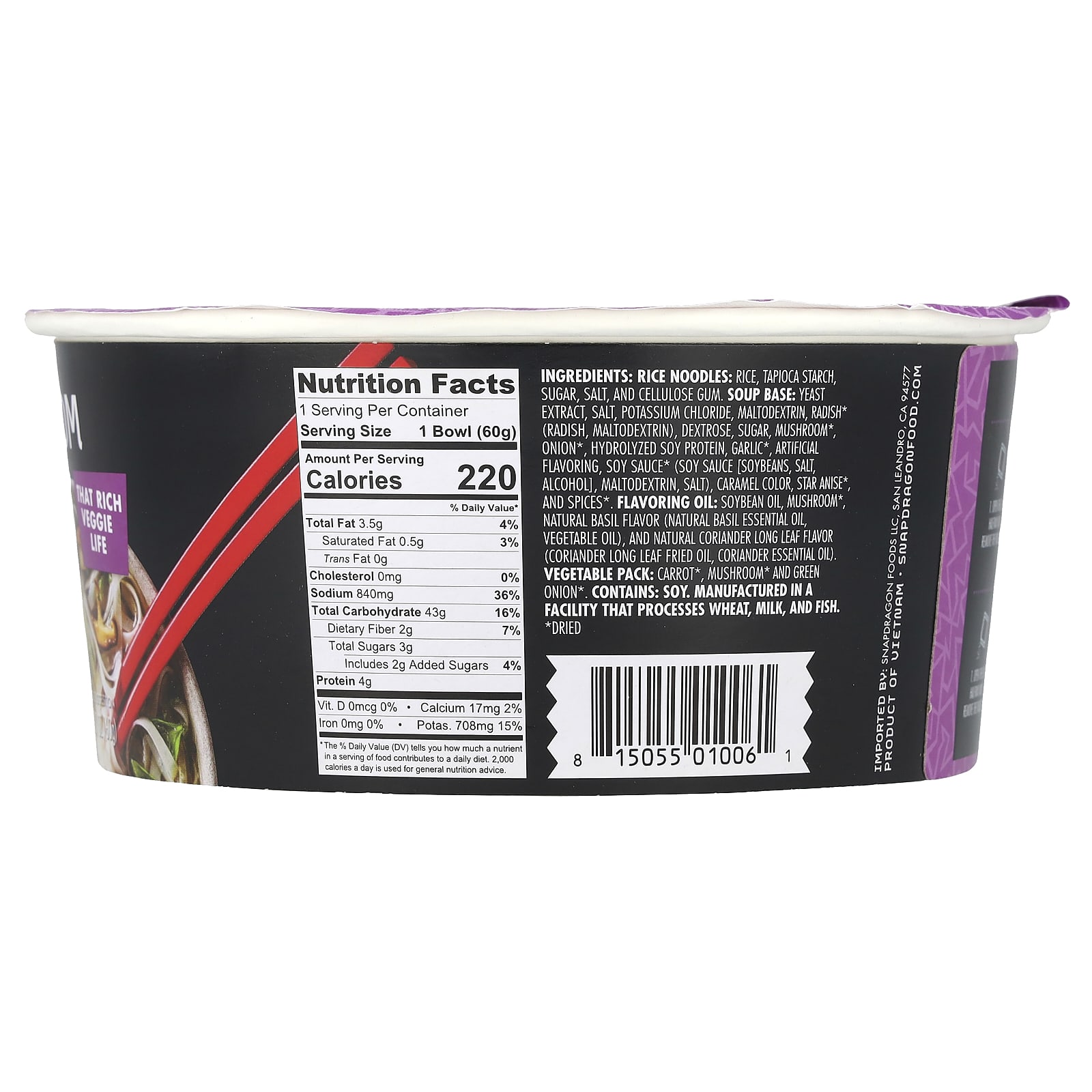Рисовая лапша: Рис, тапиоковый крахмал, сахара, соль, целлюлозная камедь. Суповая основа: Дрожжевой экстракт, соль, хлорид калия, мальтодекстрин, редис *, (редис, мальтодекстрин), декстроза, сахара, гриб *, лук *, гидролизованный белок из сои, чеснок*, искусственных ароматизаторов, соевый соус * (соевый соус [соевые бобы, соль, алкоголь], мальтодекстрин, соль), краситель «Карамель», звездчатый анис *, и специи *. Ароматизирующее масло. Соевое масло, гриб *, натуральный ароматизатор базилик (натуральное эфирное масло базилика, растительное масло), натуральный ароматизатор «длиннолистный кориандр», эфирное масло кориандра). Овощной пакет: Морковь *, гриб * и зеленый лук *.