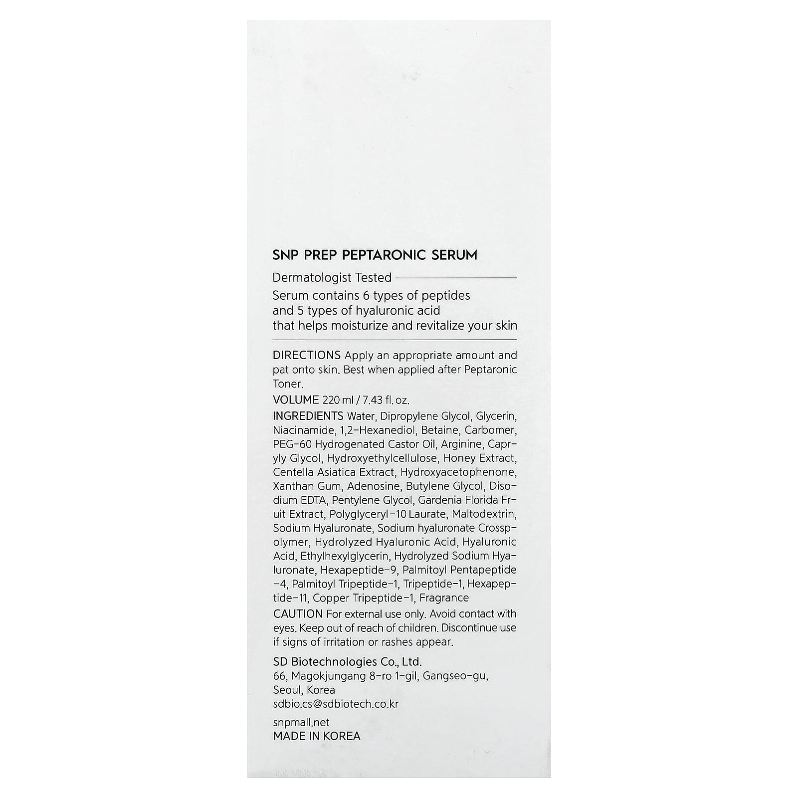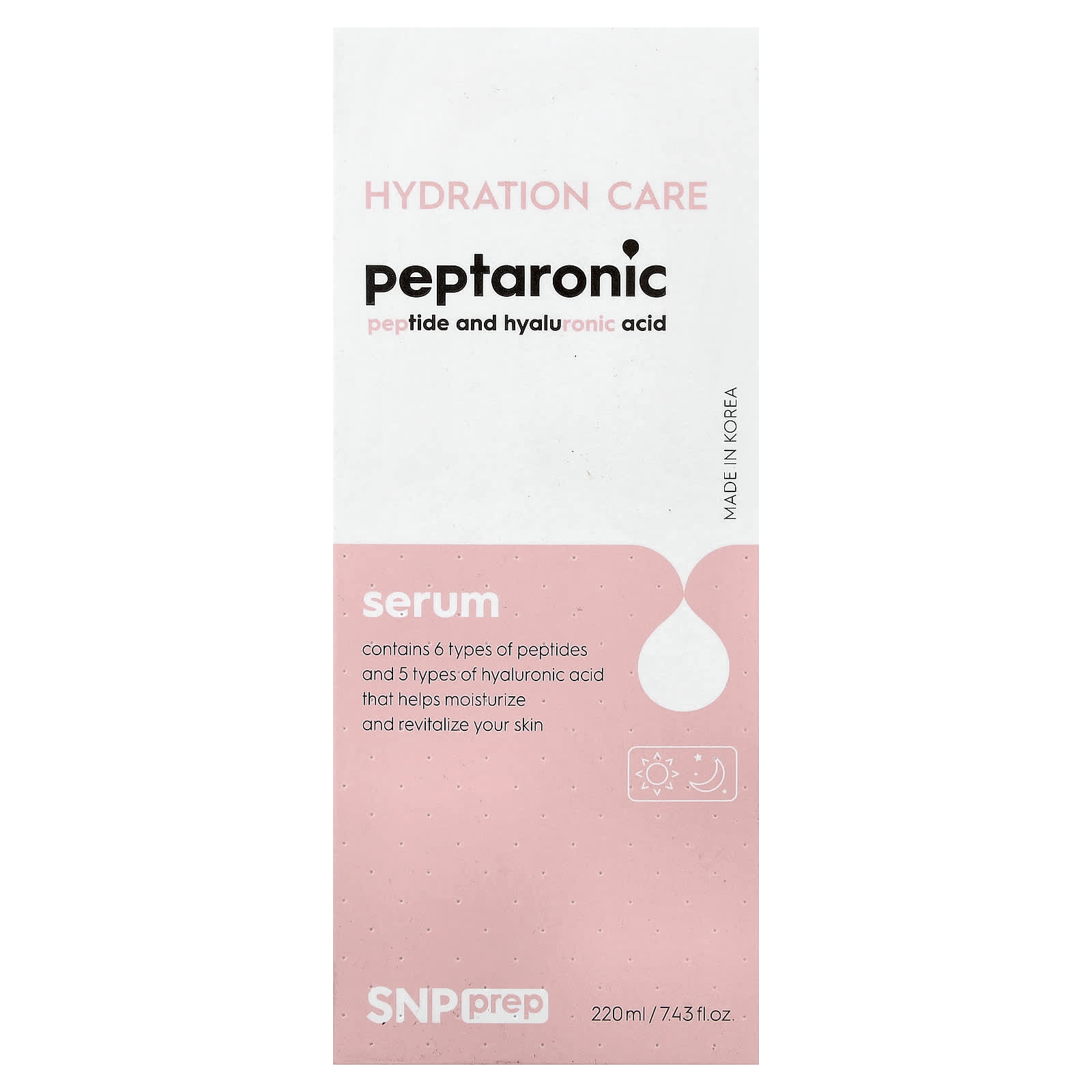 Сыворотка содержит 6 типов пептидов и 5 типов гиалуроновой кислоты, которые помогают увлажнить и восстановить кожу.