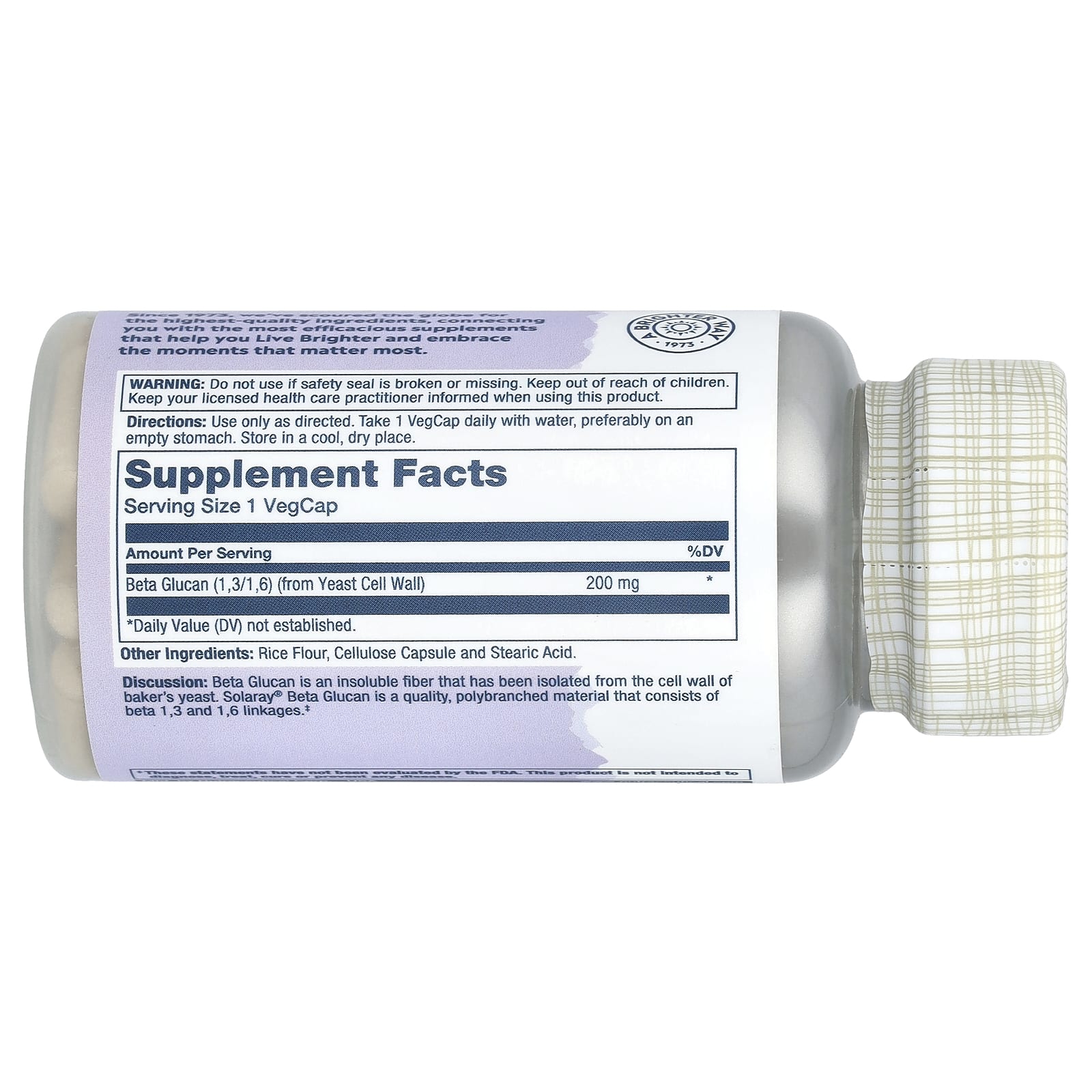 Описание. Бета-глюкан - это нерастворимая клетчатка, выделенная из клеточной стенки пекарских дрожжей. Бета-глюкан Solaray® - это качественный разветвленный материал, который состоит из бета-1,3- и 1,6-связей.