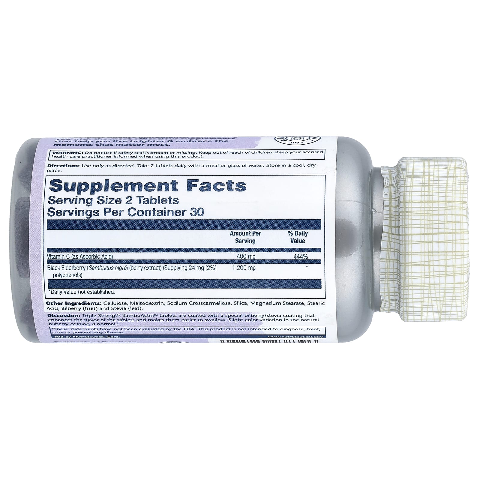 Обсуждение: таблетки SambuActin™ тройной силы действия покрыты специальной оболочкой из черники и стевии, которая усиливает вкус таблеток и облегчает их глотание. Небольшие изменения цвета натуральной черничной оболочки являются нормальным явлением.