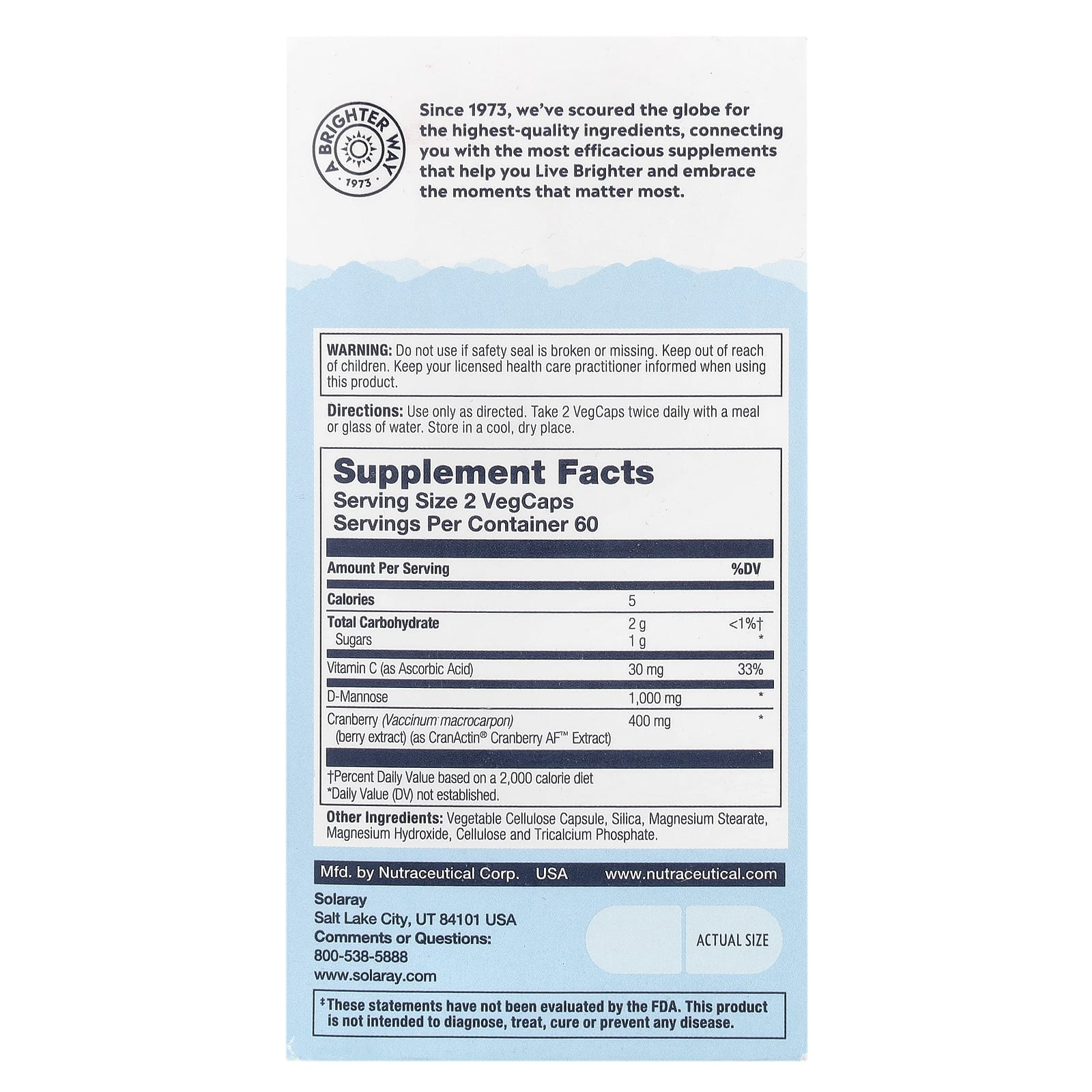 Solaray, D-манноза CranActin®, 120 растительных капсул