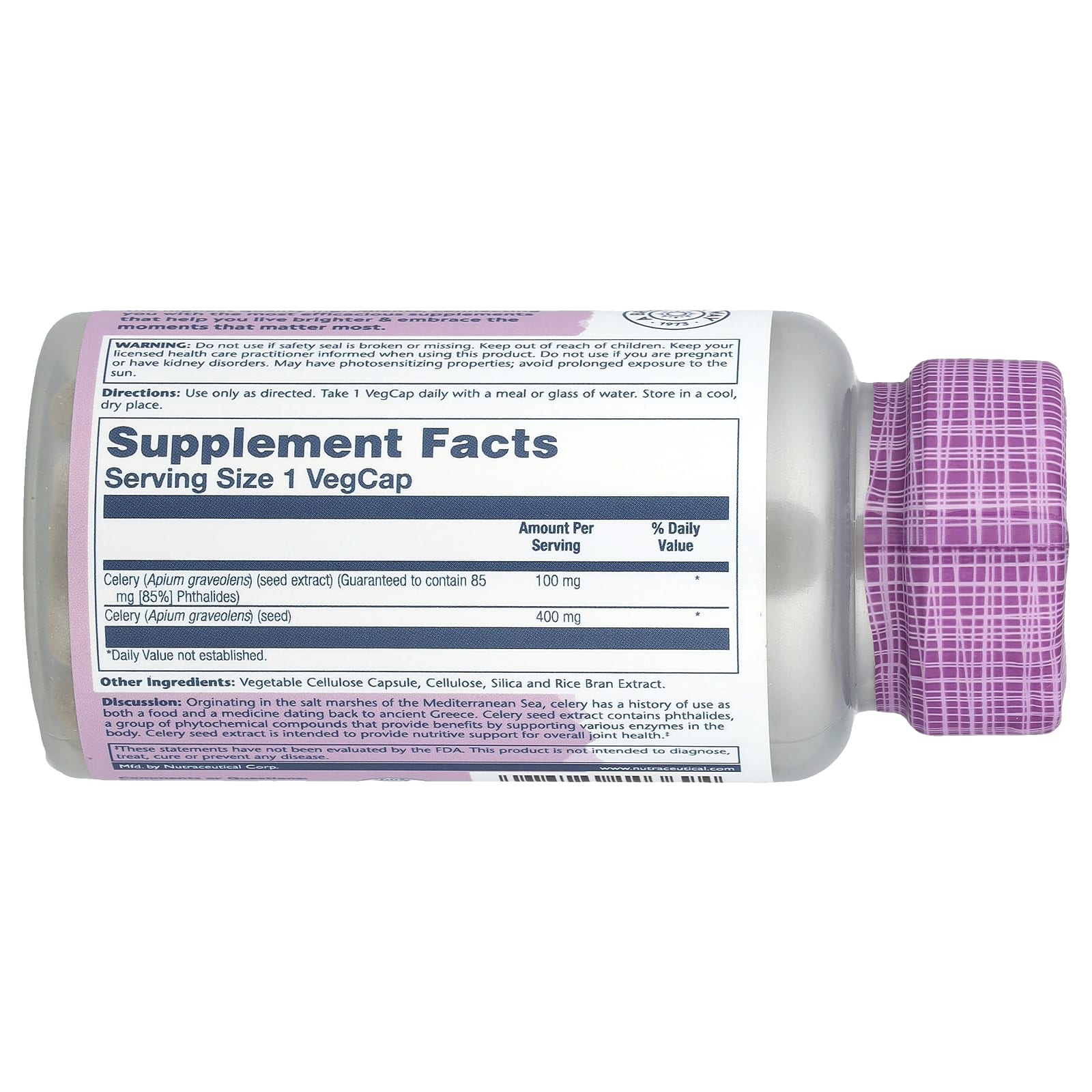 Описание. Сельдерей, произрастающий на солончаках Средиземного моря, веками использовался как в качестве продукта питания, так и в качестве средства, начиная еще с Древней Греции. Экстракт семян сельдерея содержит фталиды, группу фитохимических соединений, которые поддерживают выработку различных ферментов в организме. Экстракт семян сельдерея предназначен для обеспечения питательной поддержки общего здоровья суставов.