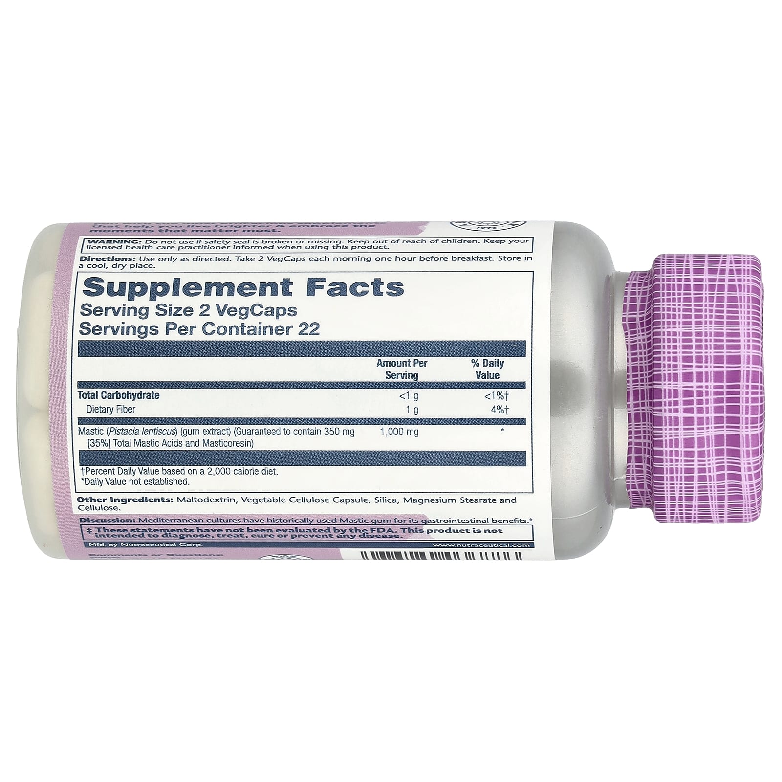 | Мастиковая смола (Pistacia lentiscus) (экстракт камеди) (гарантированно содержит 350 мг [35%] общего количества мастиковых кислот и смолы) | 1000 мг | * |