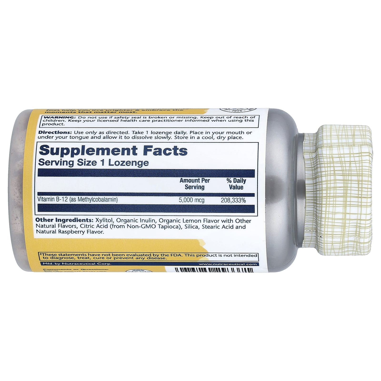 Solaray, метил B12 в форме пастилок, с натуральным лимонным вкусом и малиной, 5000 мкг, 60 пастилок
