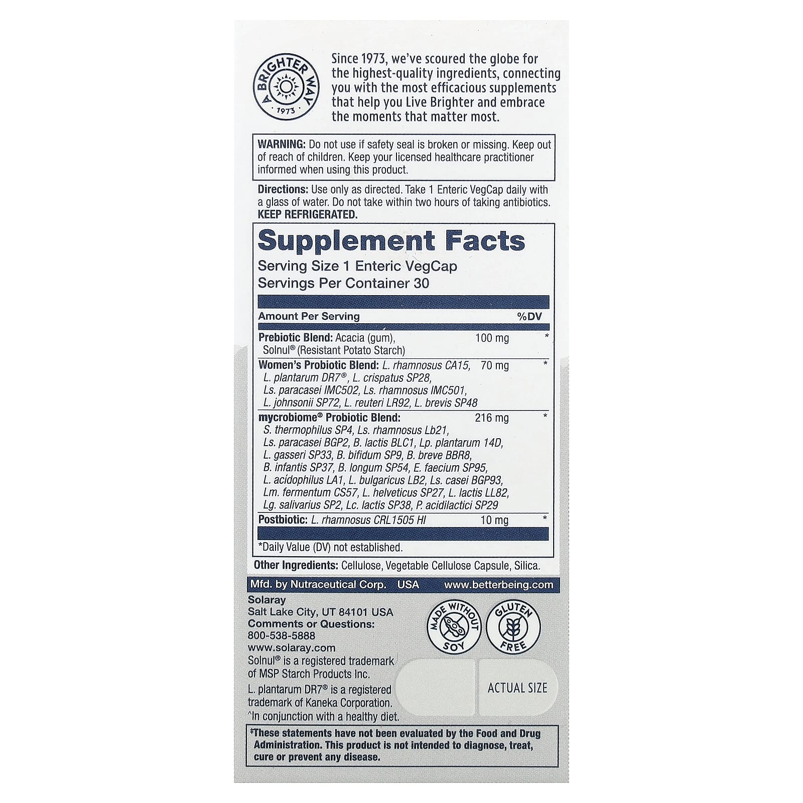 | Смесь пробиотиков для женщин: лактобактерии рамнозус (L. rhamnosus) CA15, лактобактерии плантарум (L. plantarum) DR7®, лактобактерии криспатус (L. crispatus) SP28, L. paracasei IMC502, Ls. rhamnosus IMC501, L. johnsonii SP72, L. reuteri LR92, L. brevis SP48 | 70 мг | * |