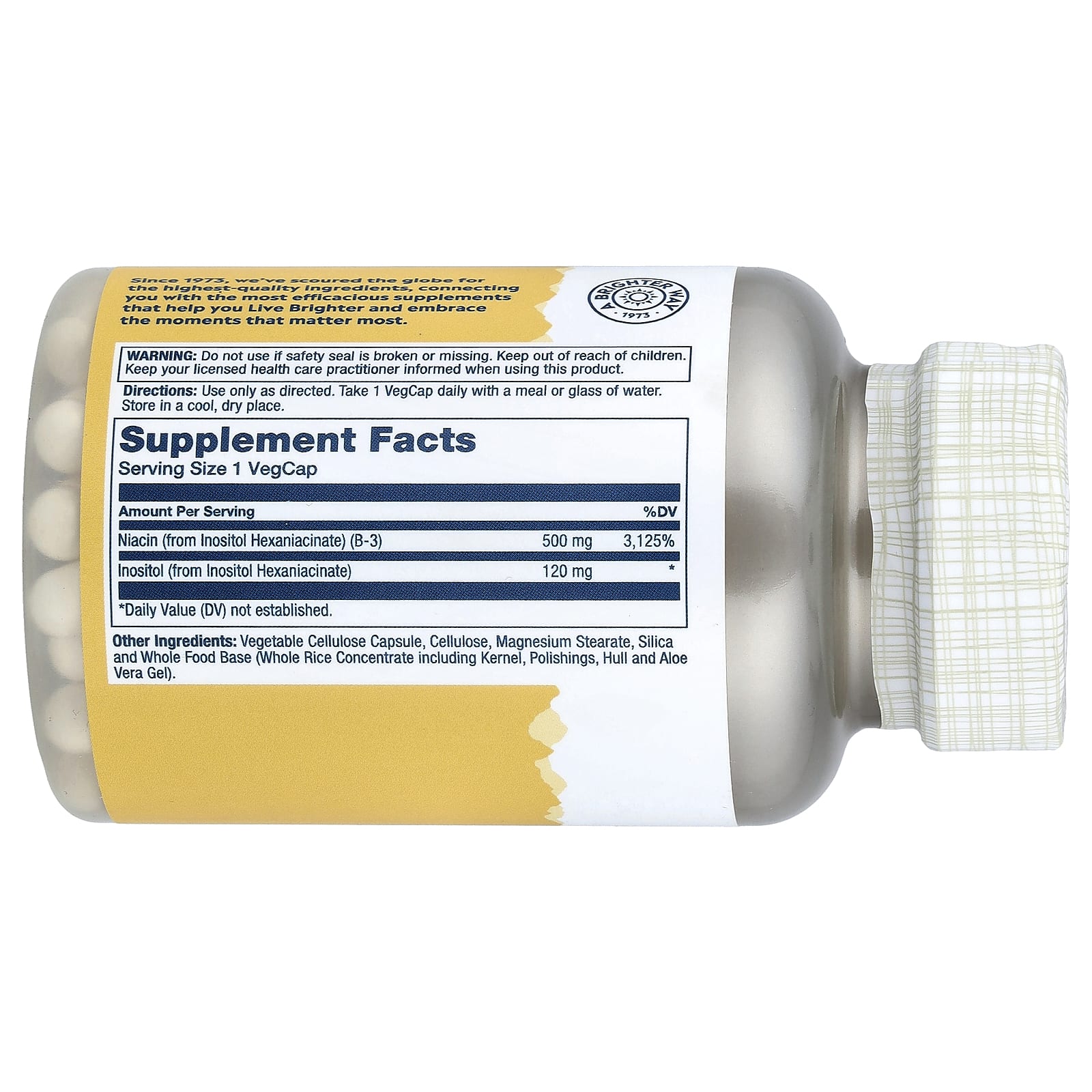 | Ниацин (из гексаниацината инозитола) (витамин B3) | 500 мг | 3125% |