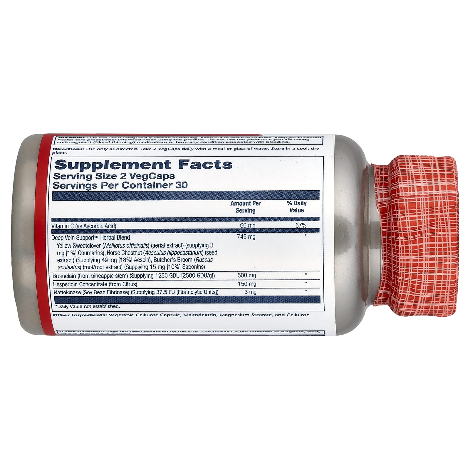 | Травяная смесь Deep Vein Support ™ Желтый клевер лекарственный (Melilotus officinalis) (воздушный экстракт) (содержит 3 мг [1%] кумаринов), конский каштан (Aesculus hippocastanum) (экстракт семян) (содержит 49 мг [18%] эсцина), метла мясника (Ruscus aculeatus) (корень / экстракт корня) (содержит 15 мг [10%] сапонинов) | 745 мг | * |