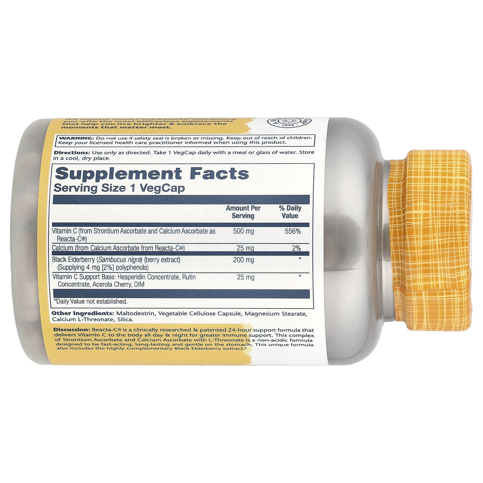Описание. Reacta-C® - это клинически исследованная и запатентованная формула для круглосуточной поддержки, которая доставляет витамин C в организм в течение всего дня и ночи для большей поддержки иммунитета. Этот комплекс аскорбата стронция и аскорбата кальция с L-треонатом представляет собой некислую формулу, разработанную для быстрого действия, длительного действия и нежной для желудка. Эта уникальная формула также содержит экстракт черной бузины.