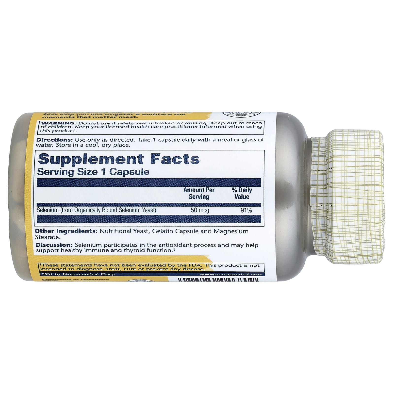 | Селен (из органически связанных селеновых дрожжей) | 50 мкг | 91% |